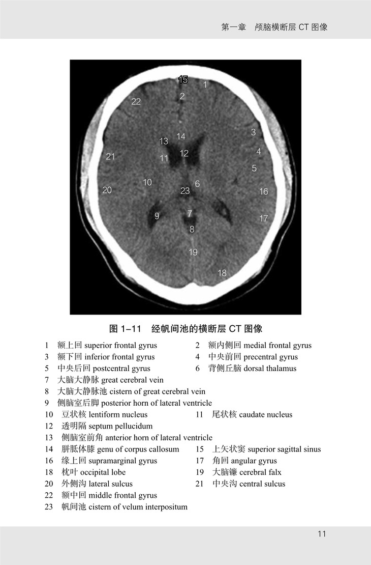 《颅脑影像解剖图谱》共有图像 175 幅,包括以下四个部分:
