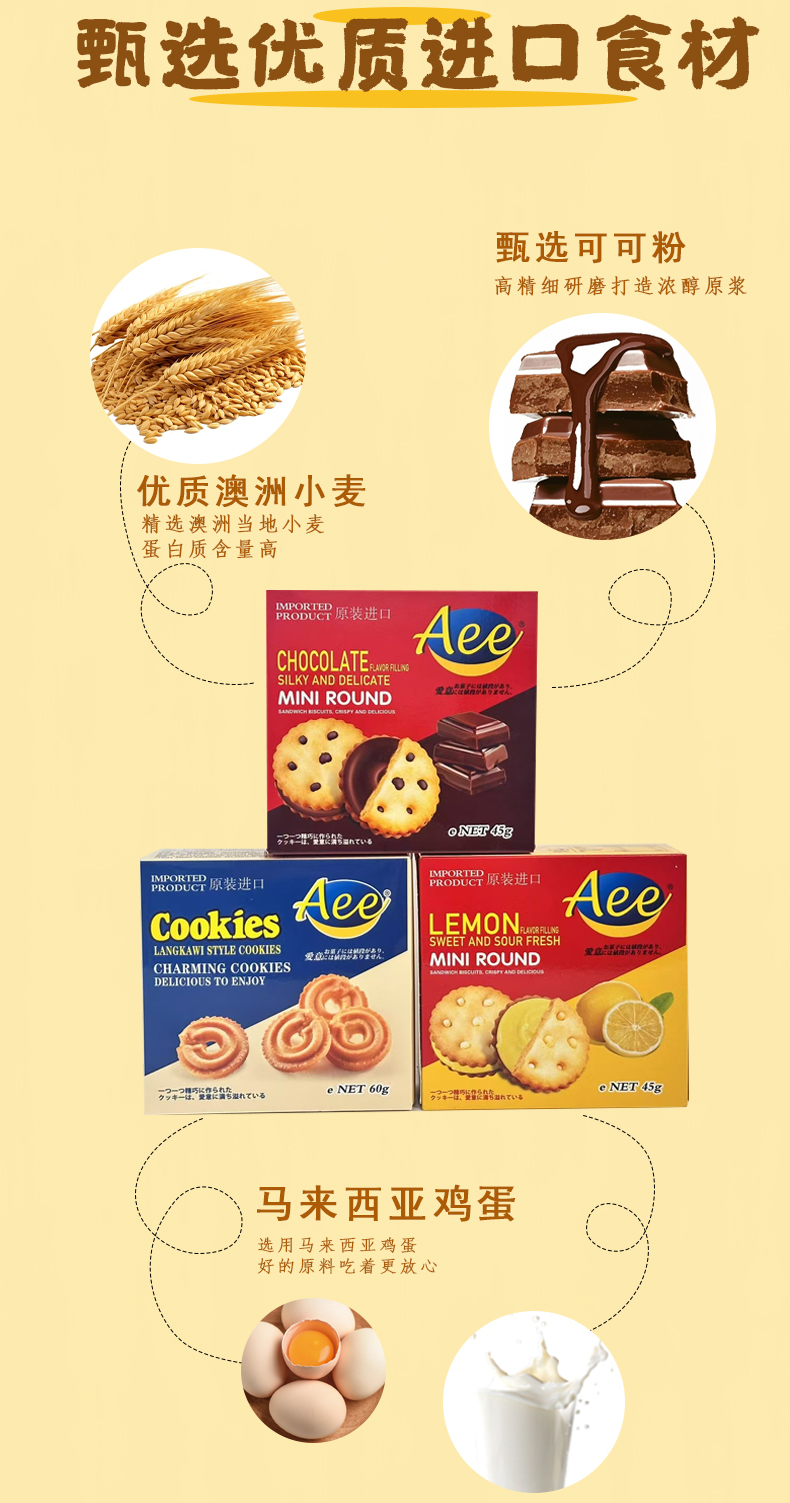 Aee马来西亚进口饼干兰卡威曲奇60g*3