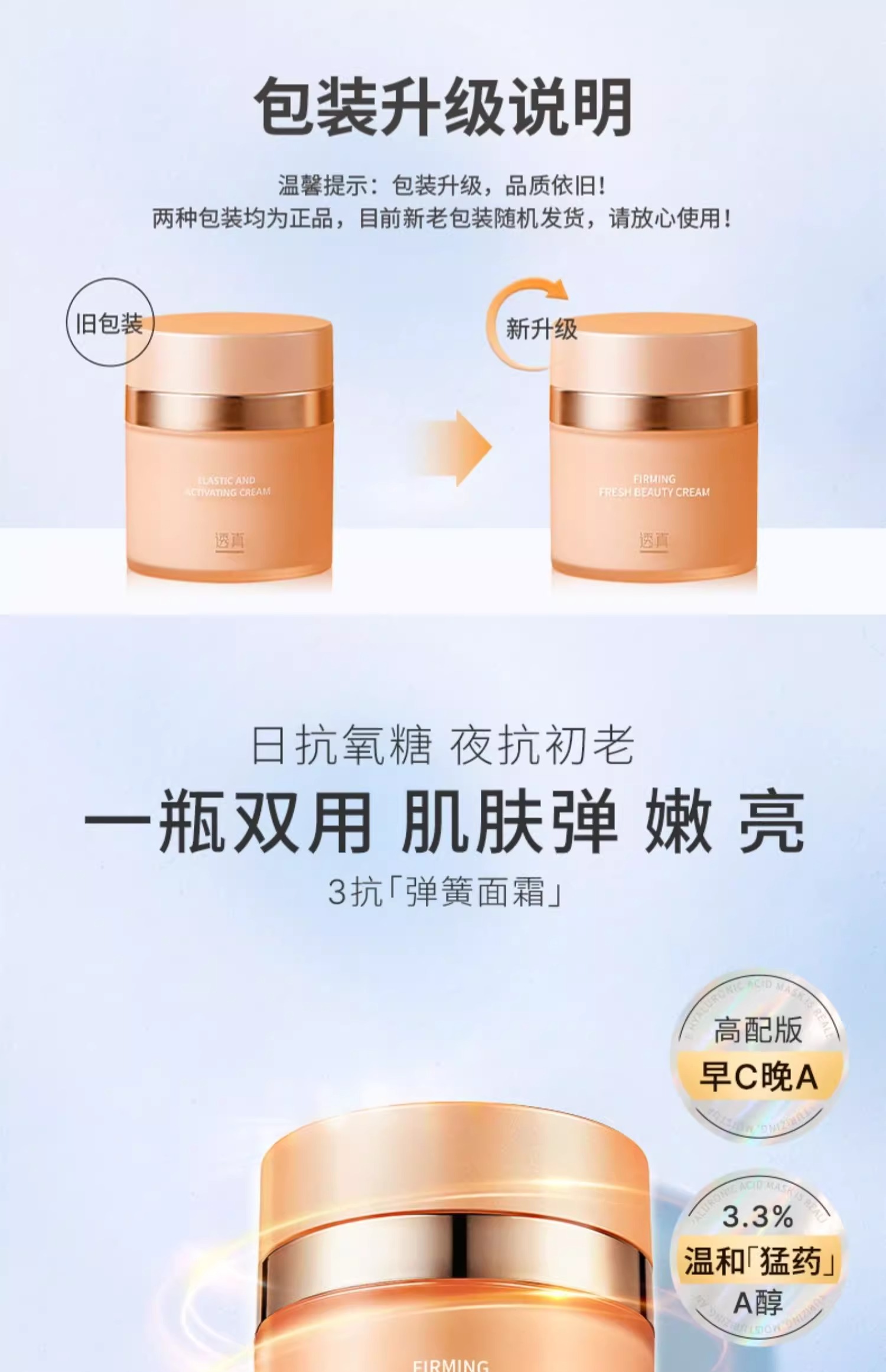 【早抗糖氧 晚淡纹】弹润鲜颜美肤霜50g#透真面霜抗皱紧致嫩肤晚霜补水保湿滋润乳液控油女男贵妇膏