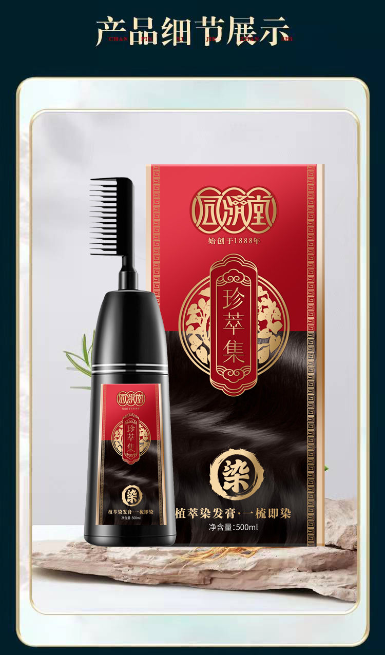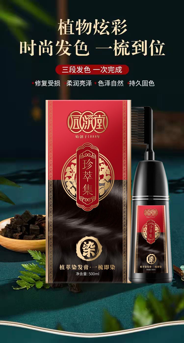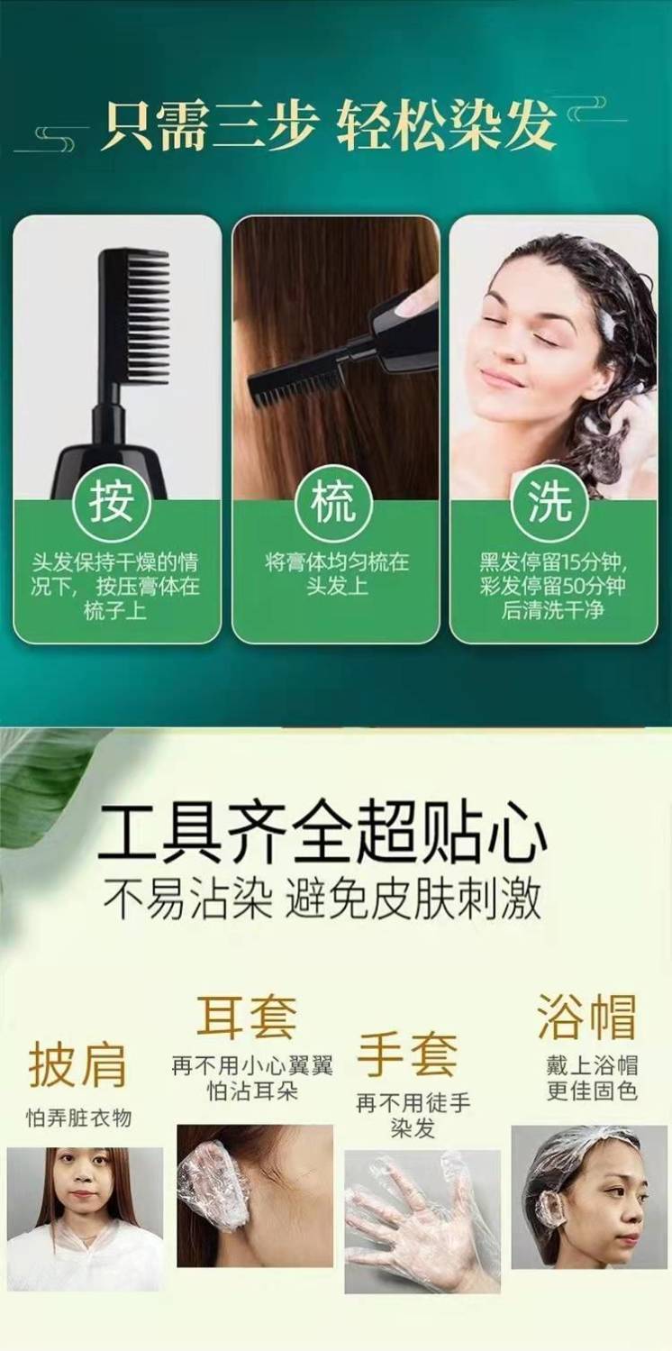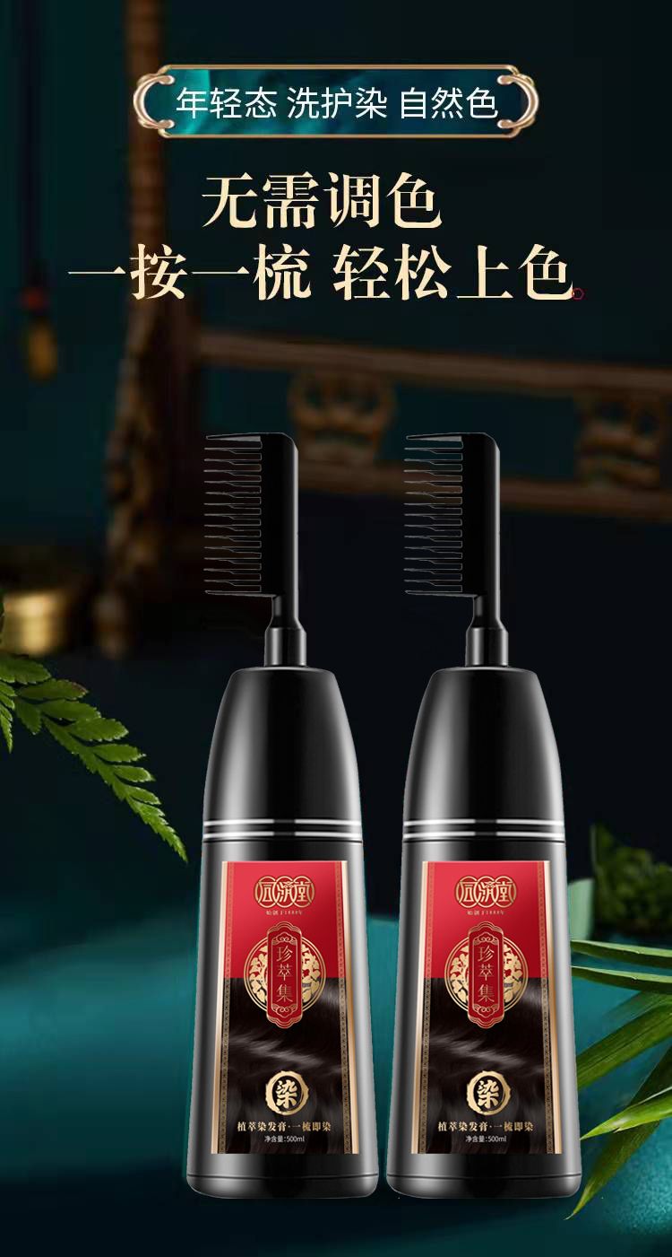 同济堂植物染发膏梳子染一洗黑网红爆款染发剂自己在家染