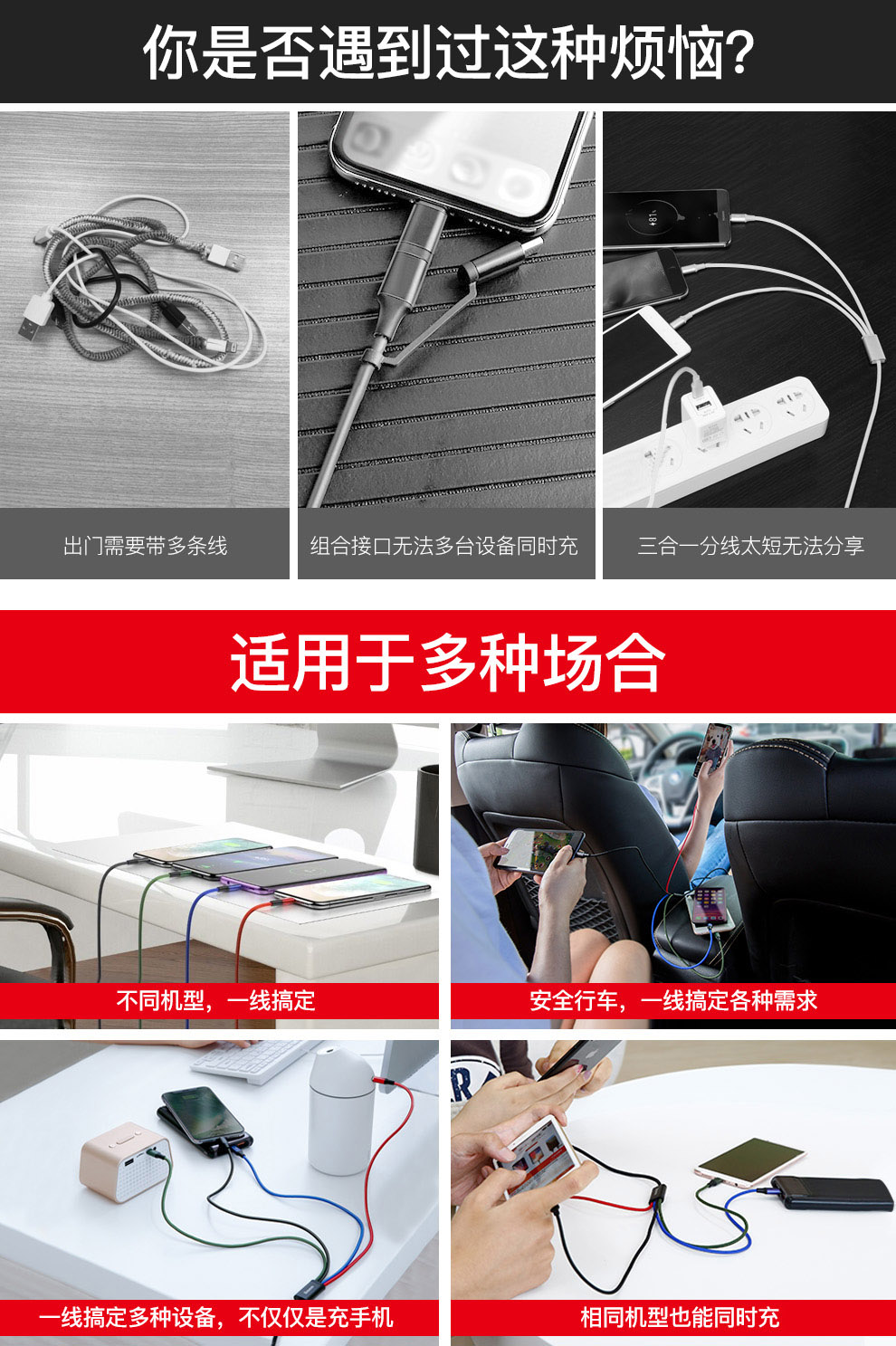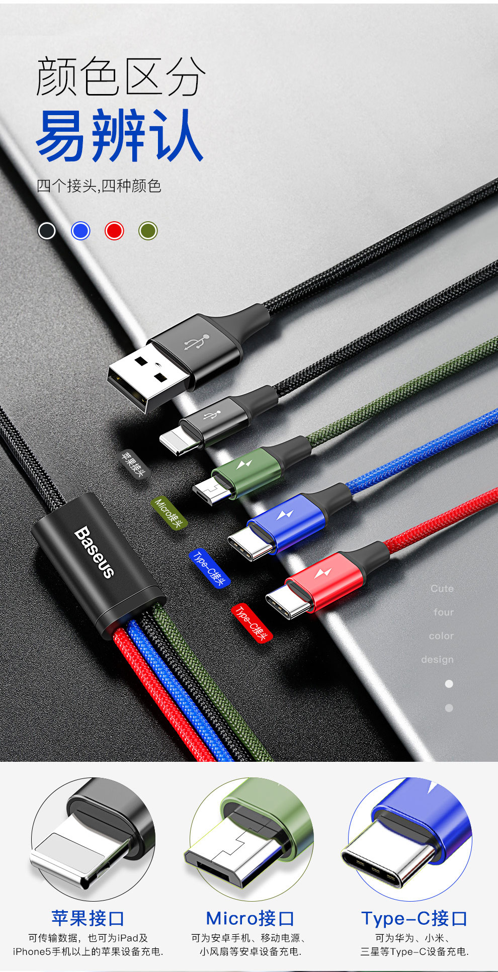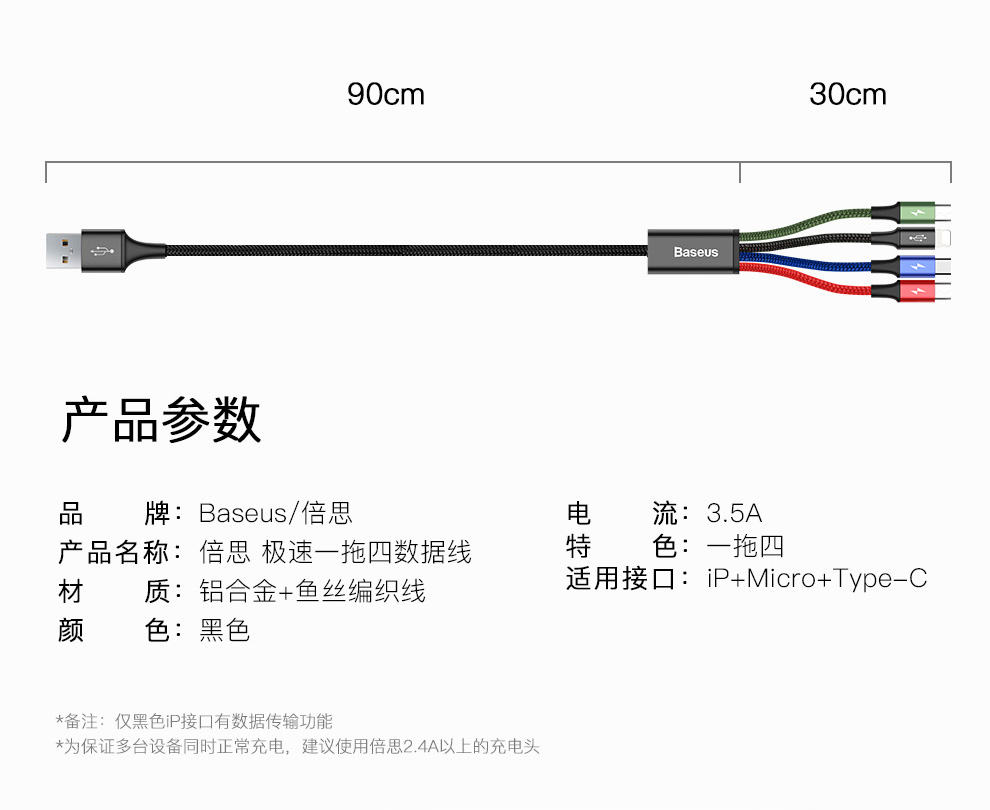 【69元3件】倍思 极速系列一拖四数据线 3.5A