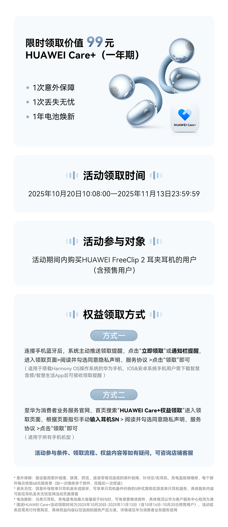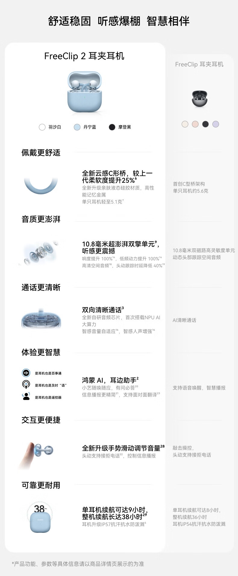 华为FreeClip 2 耳夹耳机 开放式无线蓝牙耳机 全新C形桥 舒适稳固/澎湃双擎