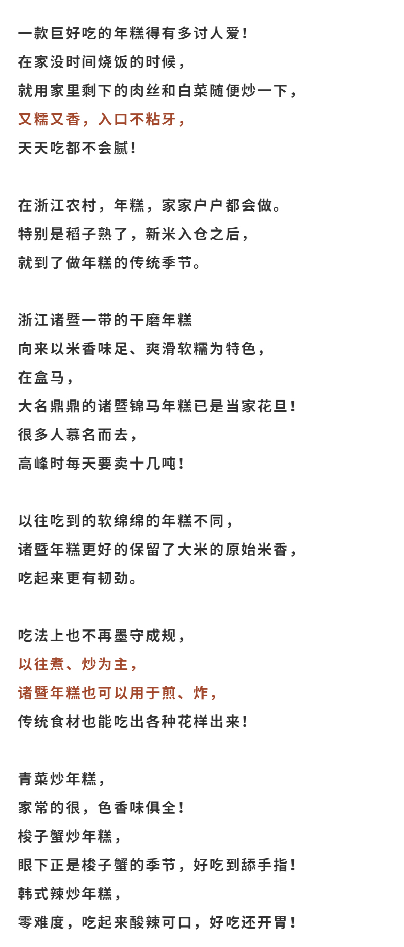 诸暨年糕来啦,是我家乡的非遗哎,超级推荐!用当季五常稻花香新米制作,米香浓郁,咬起来不会软绵绵,很有嚼劲,煎、炸、煮、炒皆可,咸炒甜蘸,都灰常灰常好吃,而且,有切好的!