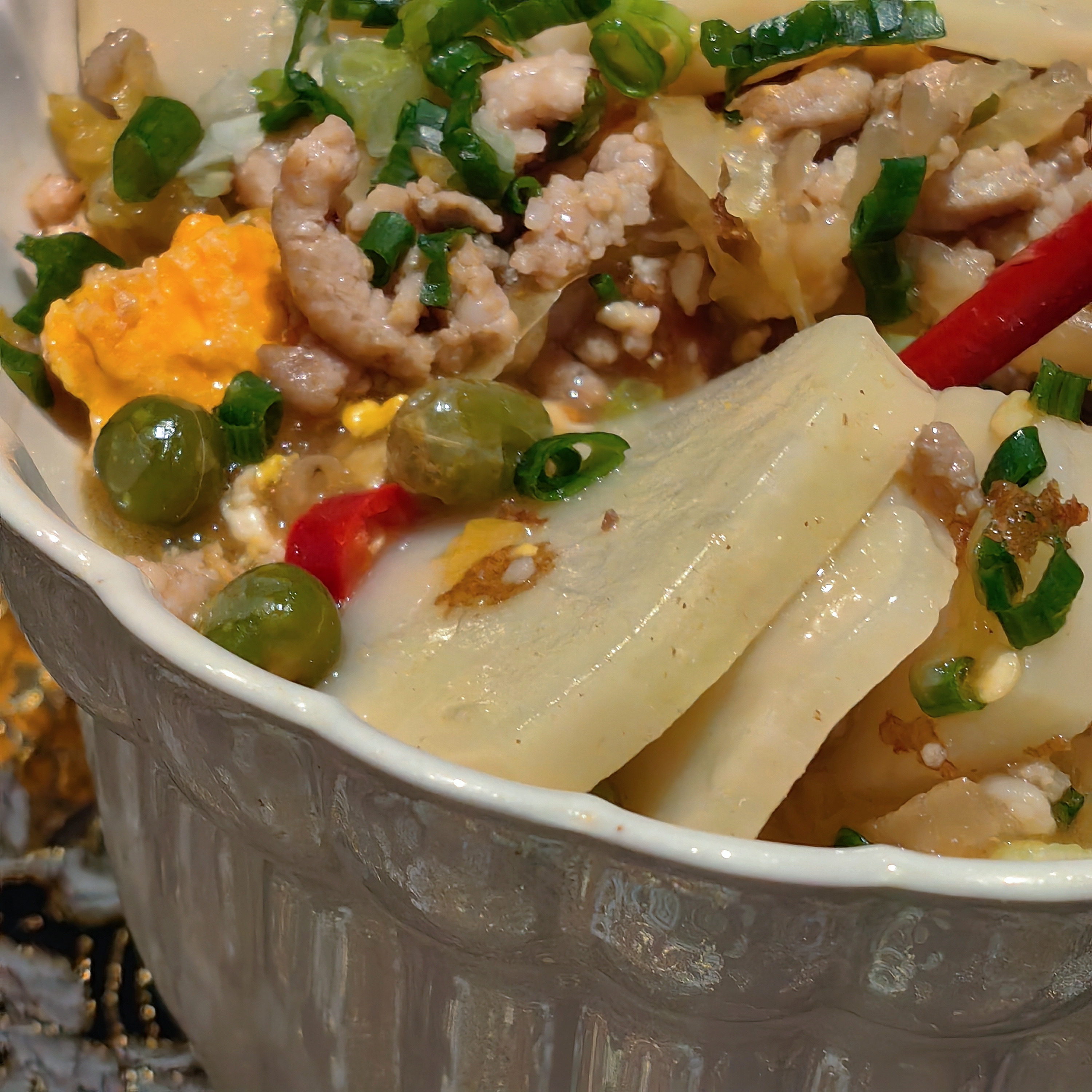 年糕有年糕条和年糕片,炒着吃的话更推荐切片年糕,这样就不用吭哧吭哧的切了,直接就可以动手,但如果是想吃蒸煮烤的年糕块,就用年糕条。做的时候,可以将年糕用开水焯个30秒过凉水,再来些火腿、青菜、肉丝、鸡蛋和酱料什么的,随便炒炒就可以了。我比较懒,是炒了青菜后直接扔进去,翻滚下,再加点水收干,青菜里裹着稠稠的米浆,年糕又粘着小肉丁,就真的,好吃到哭泣,很有妈妈的味道!