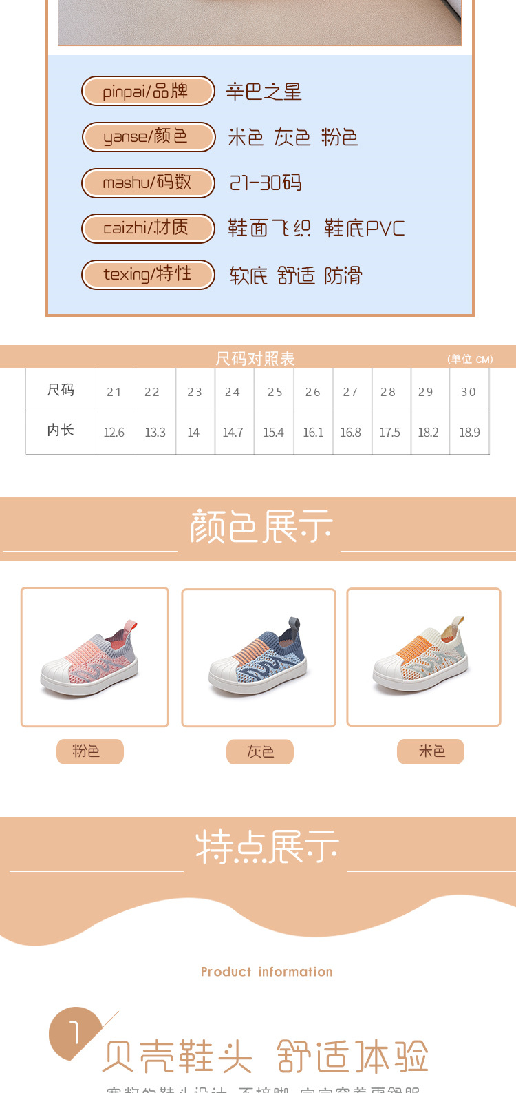 【宝宝学步鞋 防滑透气 舒适体验】辛巴之星春款童鞋儿童韩版板鞋女童贝壳头运动鞋男童飞织软底潮鞋