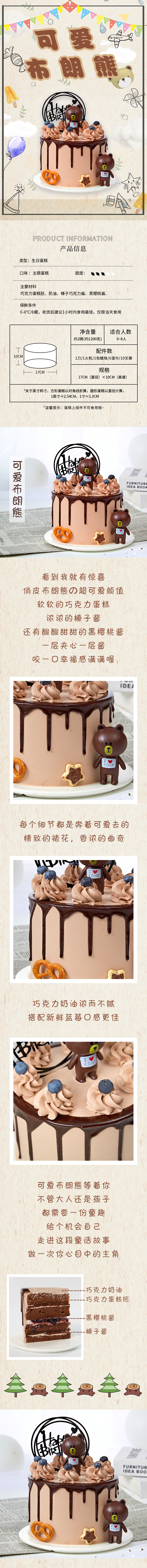 可爱布朗熊-香浓醇厚口感丰富-7寸加高款(主题蛋糕)