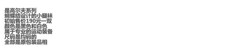 高尔夫蝴蝶结小腿袜,原包装品相。小标刺绣软支撑运动袜C122560