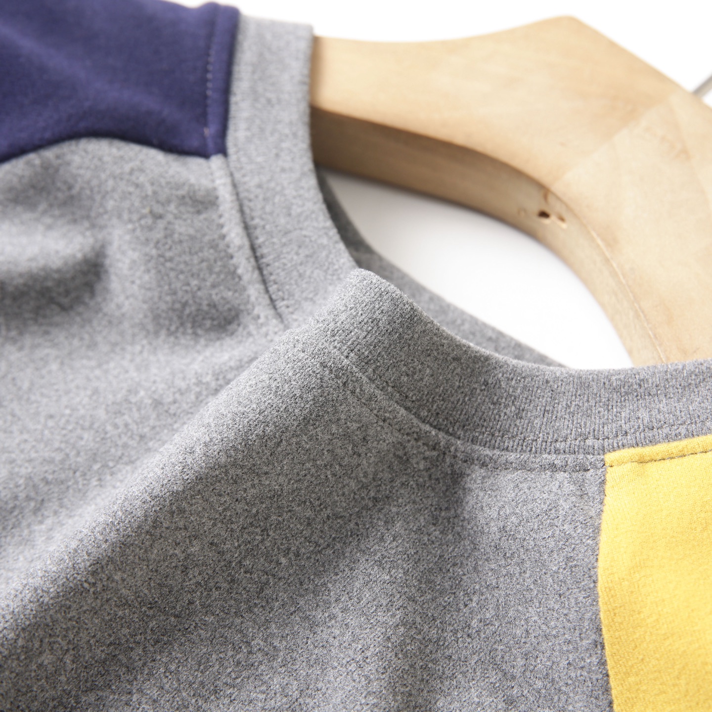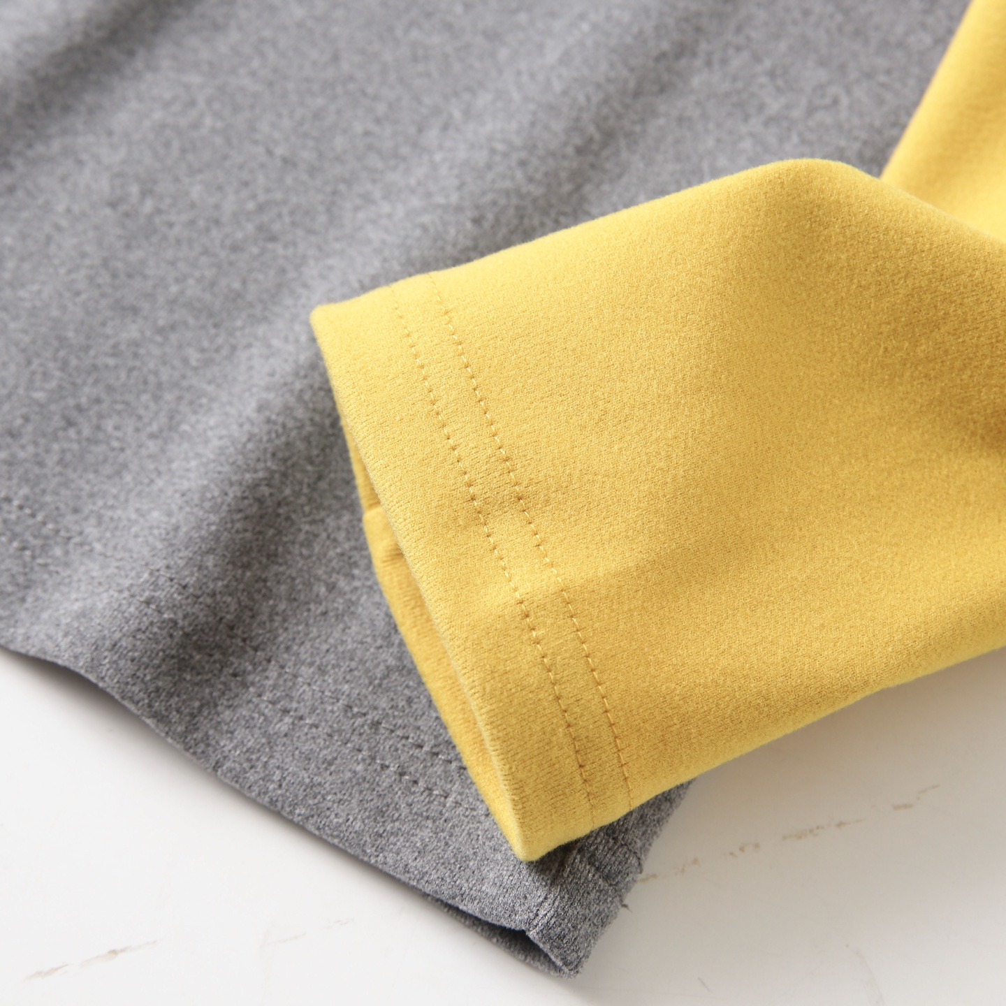 领口、袖口、下摆等处均采用精细的二本针缝制!