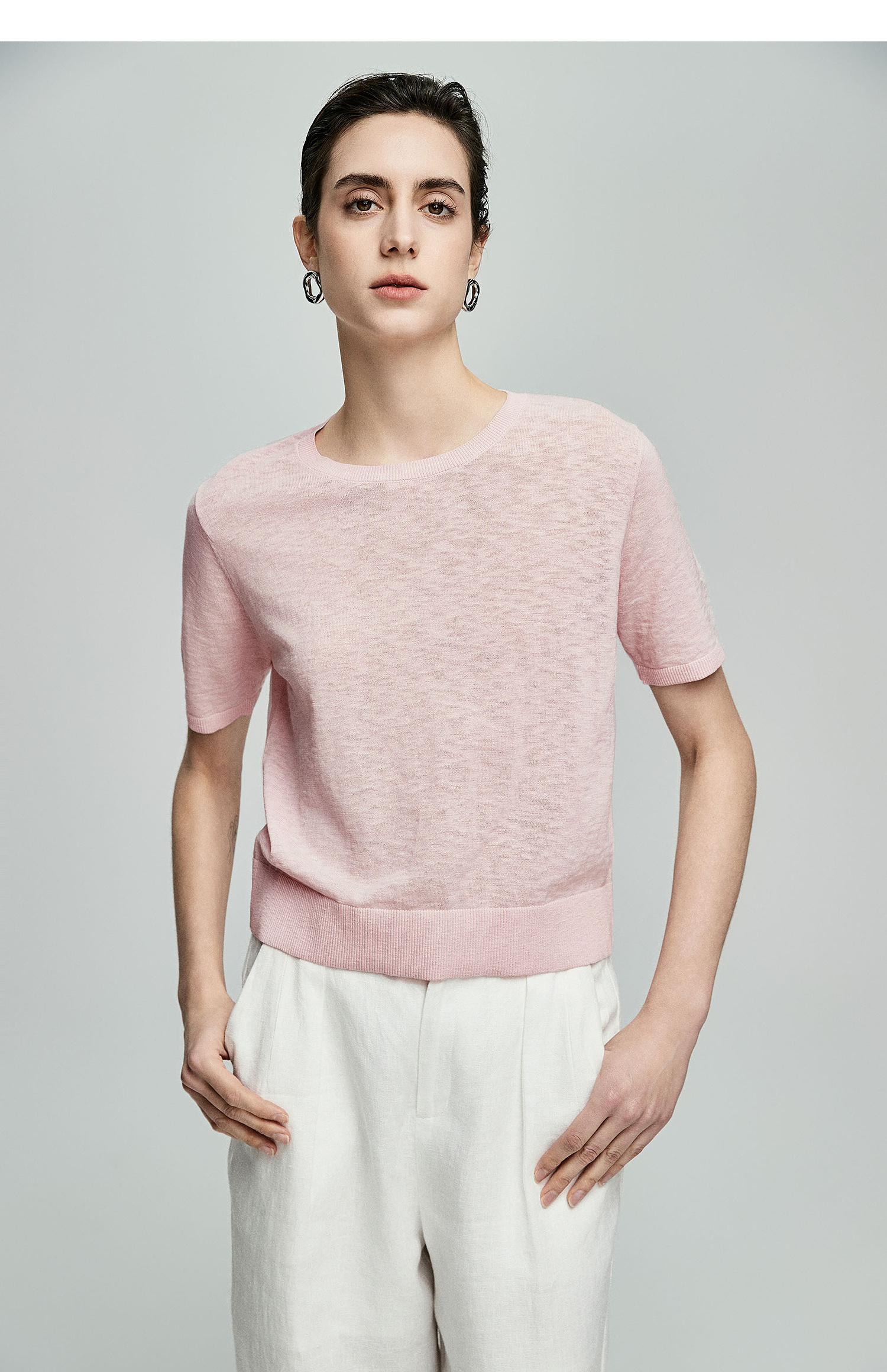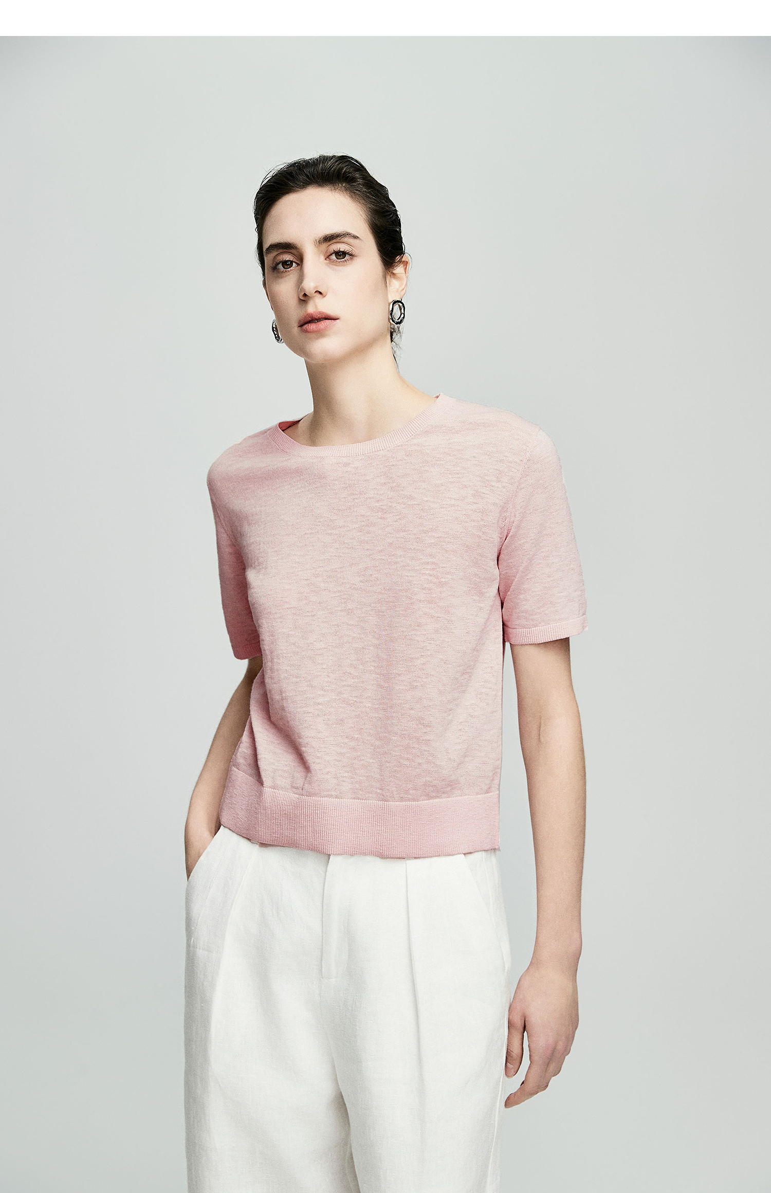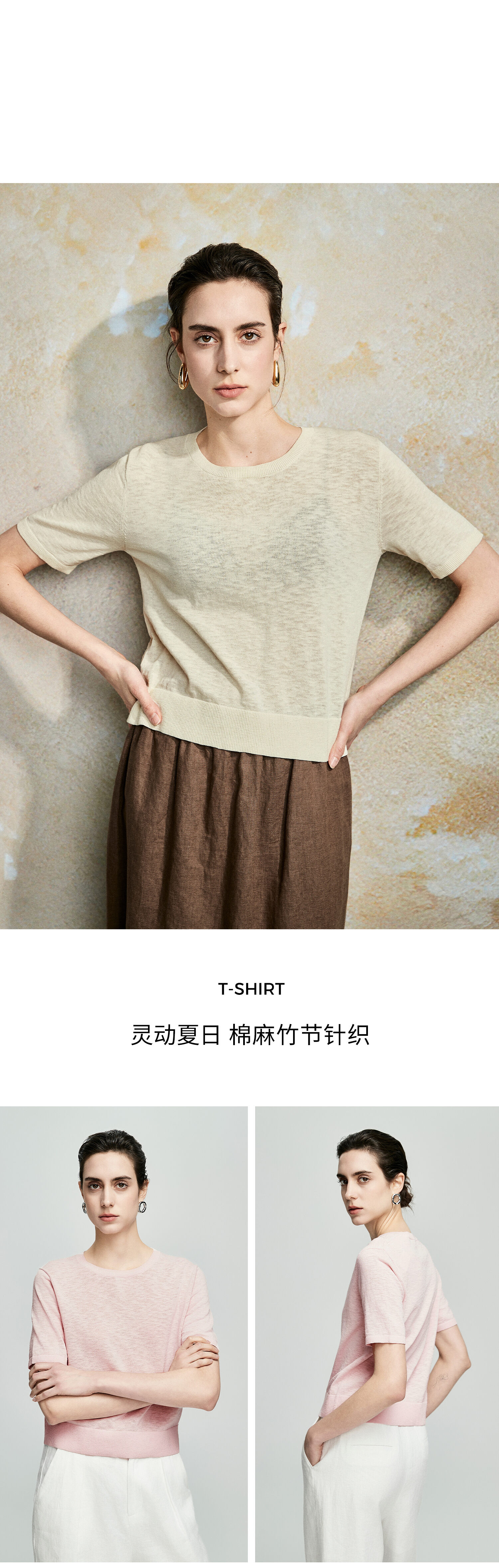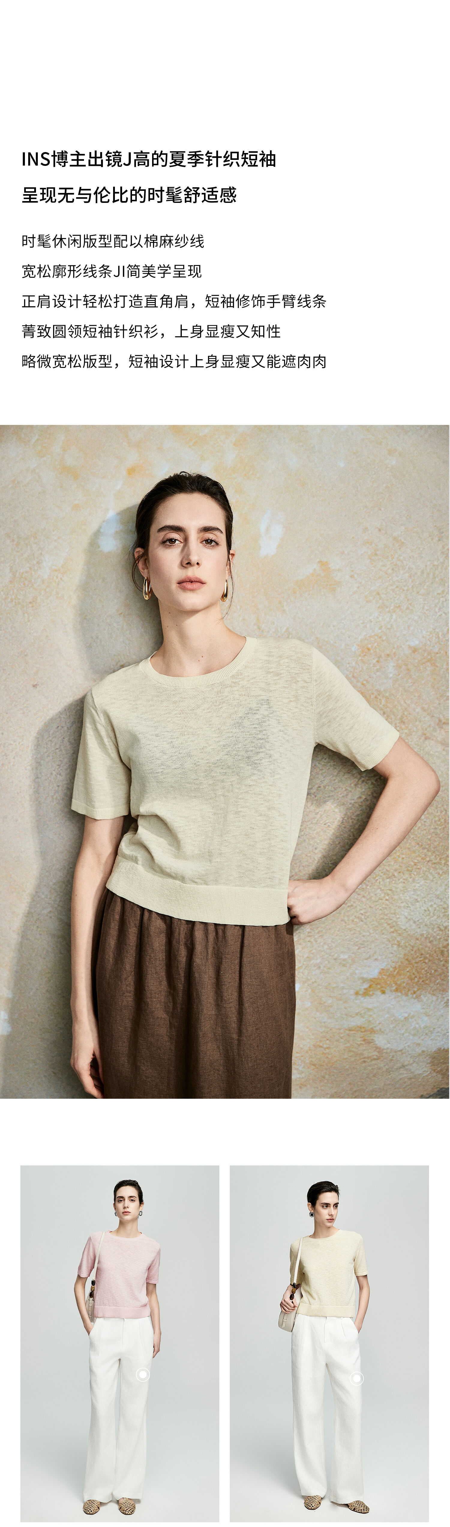 棉仓362635016-初棉棉麻竹节-圆领短袖针织衫