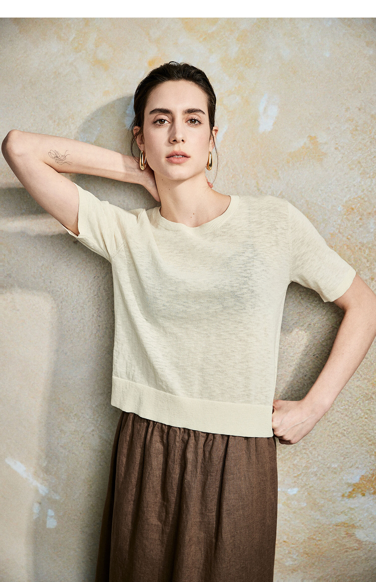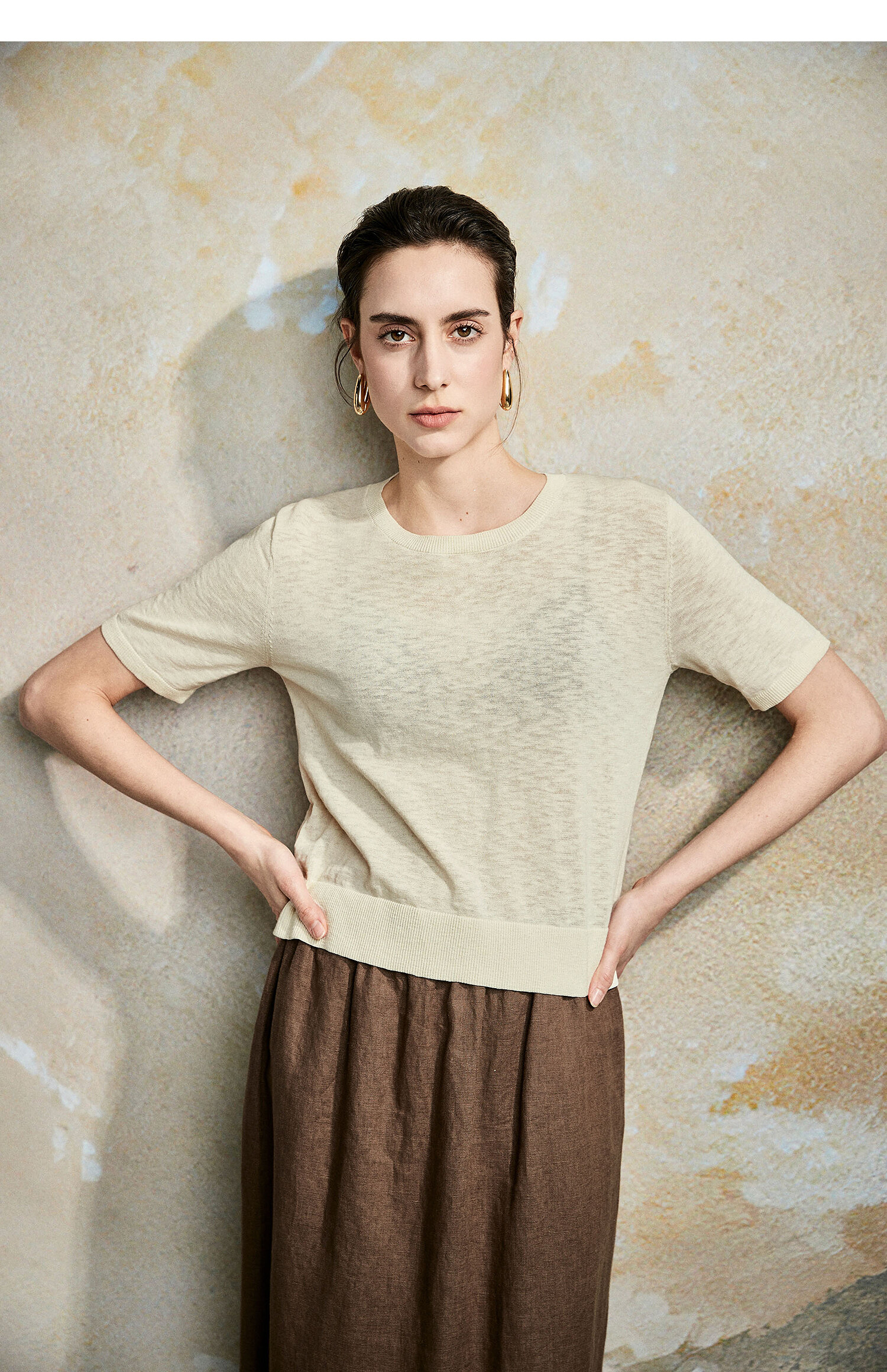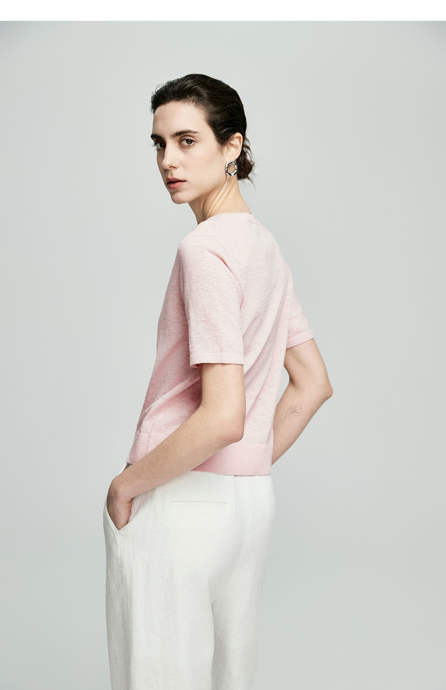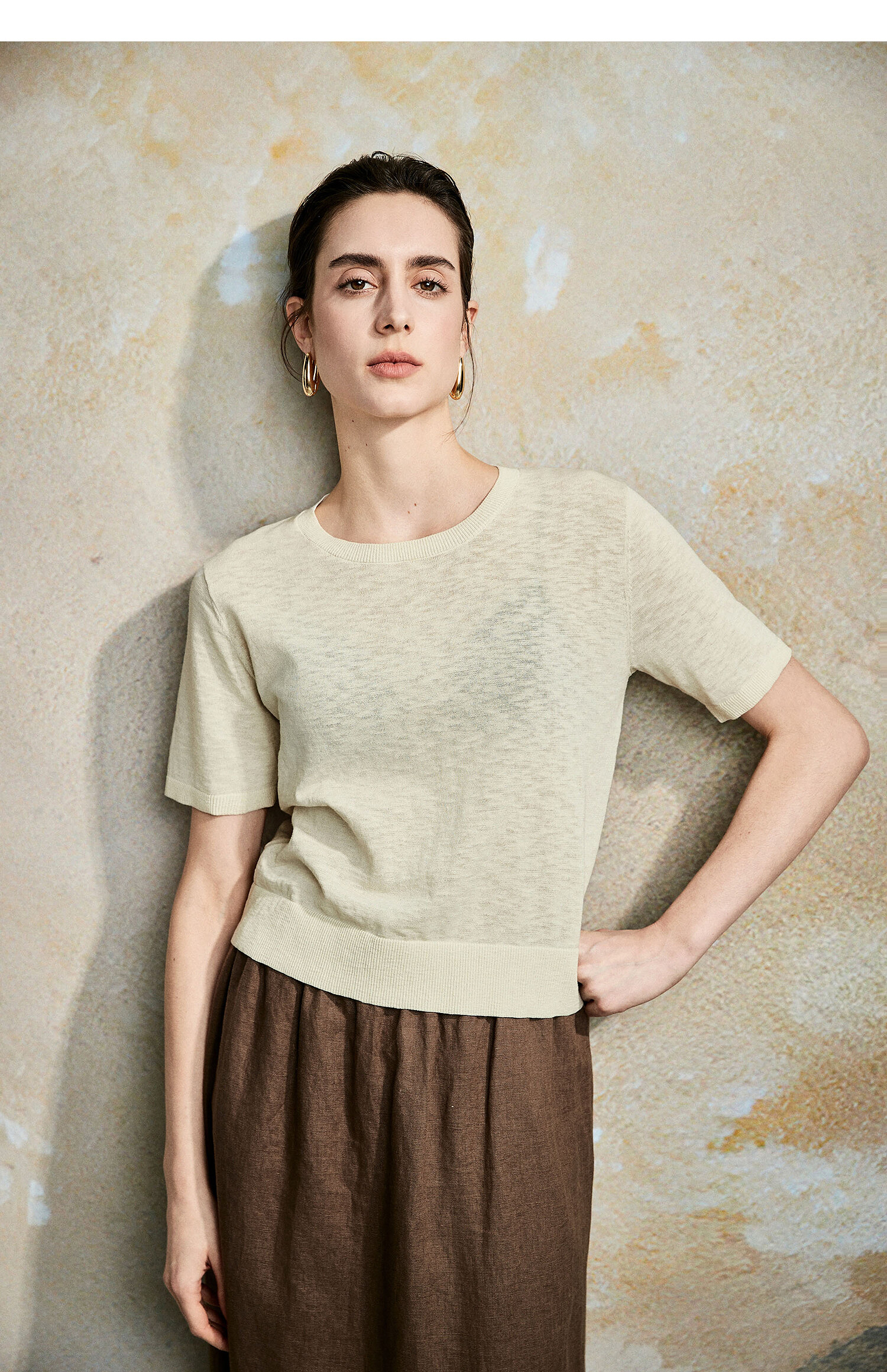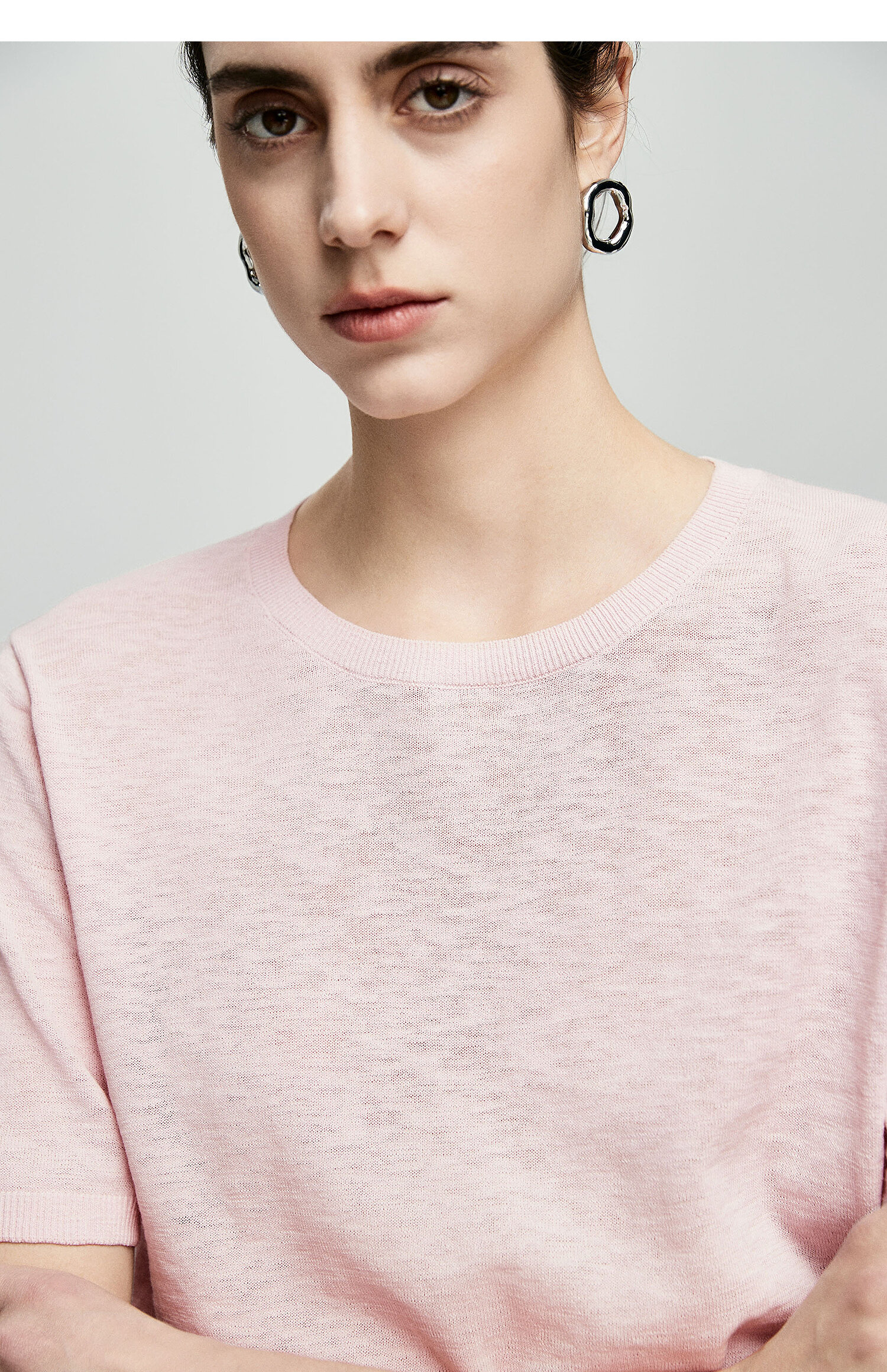 棉仓362635016-初棉棉麻竹节-圆领短袖针织衫