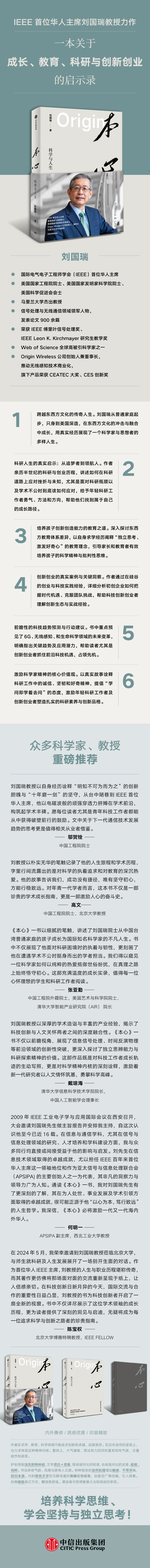 在 2024 年 5 月, 我荣幸邀请到刘国瑞教授莅临北 京大学, 与师生就科研及人生发展展开了一场别开 生面的对话。作为位华人 IEEE 主席,刘教授的人 生与职业历程堪称传奇, 而其著作更仿佛将那场面 对面的交流重新呈现于纸上, 让人倍感亲切。 在科技创新日新月异的今天, 国际交流与合作的重要性 日益凸显, 刘教授的书为科技创新者开启了一扇全 新的视窗。 书中不仅详尽展示了这位学术领袖的成 长历程, 更为读者提供了深刻的洞见与启迪, 无疑 将成为每一位追求科学与创新之路者的珍贵指南。