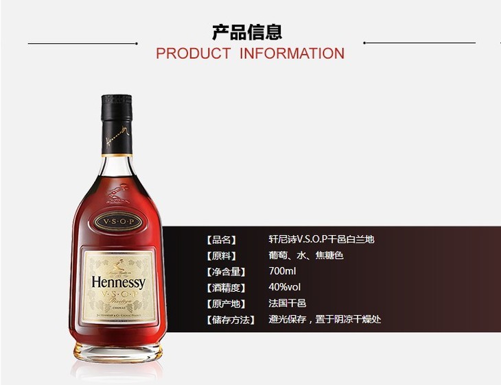 【行货】法国Hennessy 轩尼诗VSOP 干邑白兰地