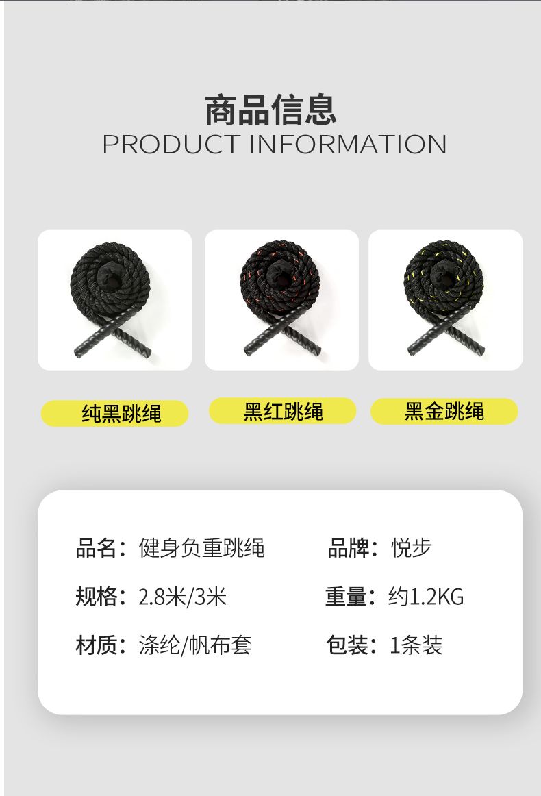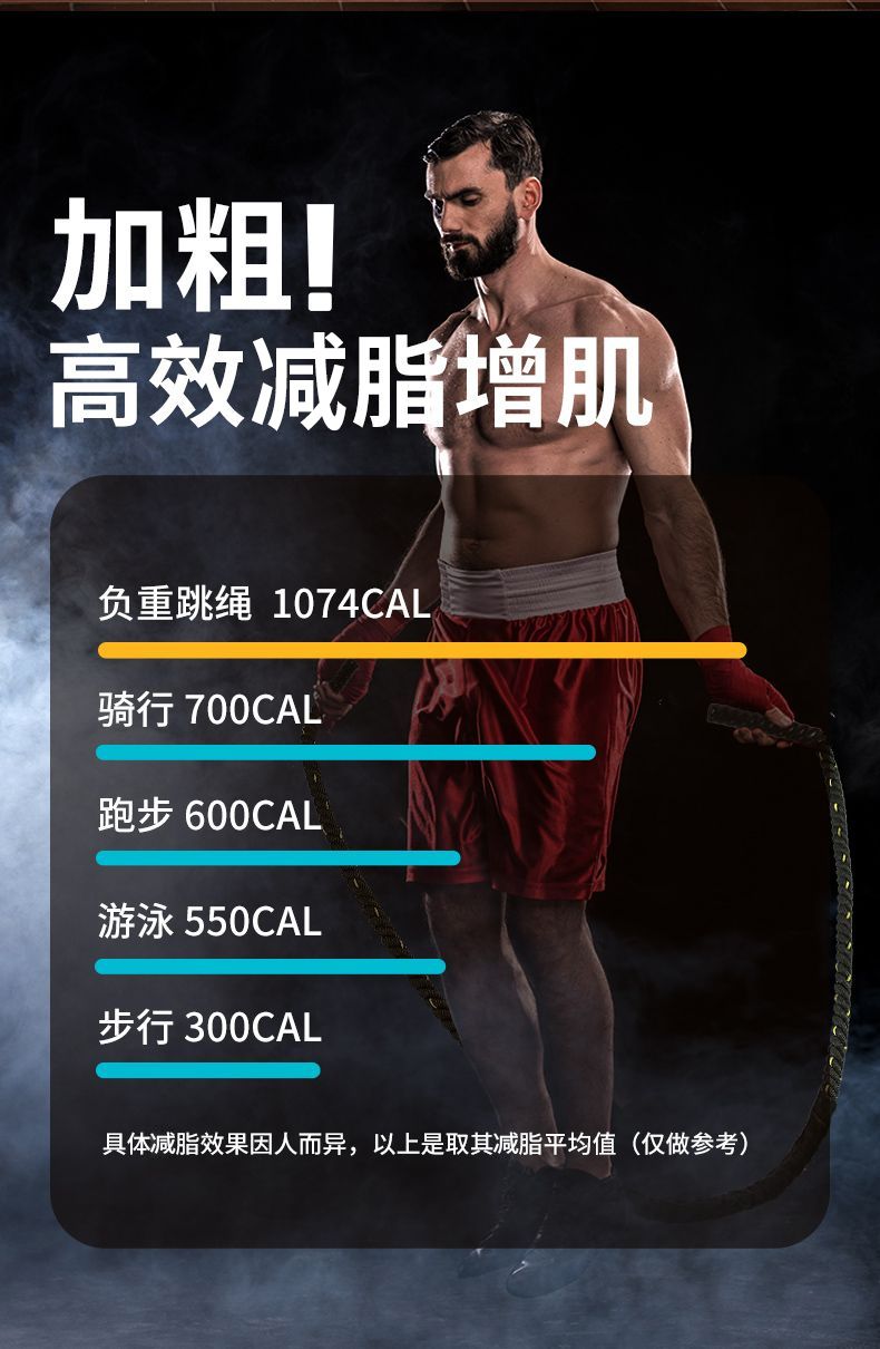 健身负重跳绳粗绳男士专用健身格斗加重型跳绳体能爆发