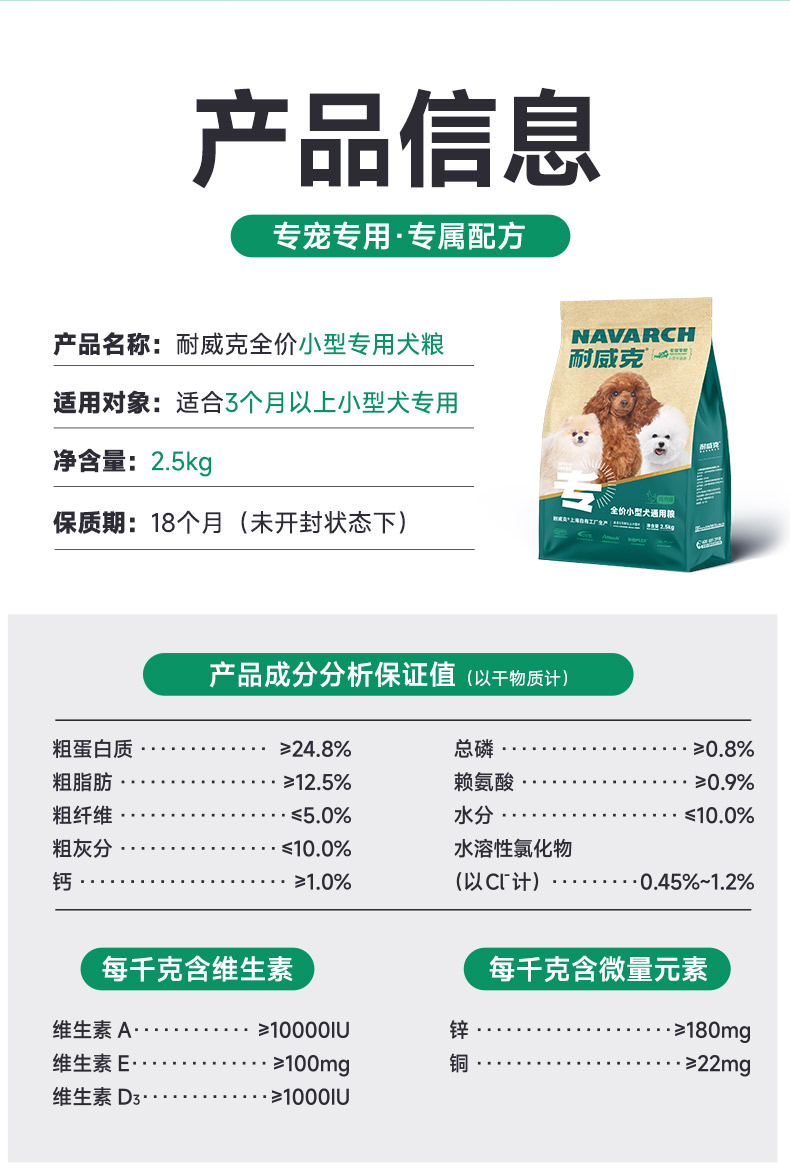 小型犬经典专用狗粮 | 鲜鸡肉配方 | 靓丽毛发 | 呵护肠胃