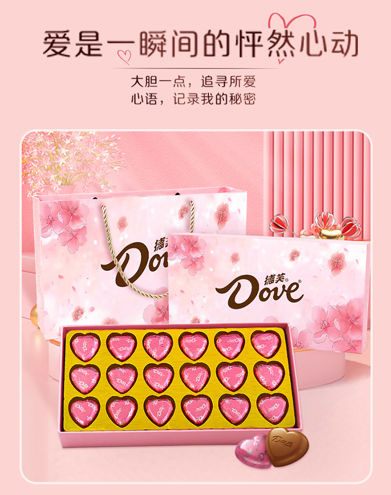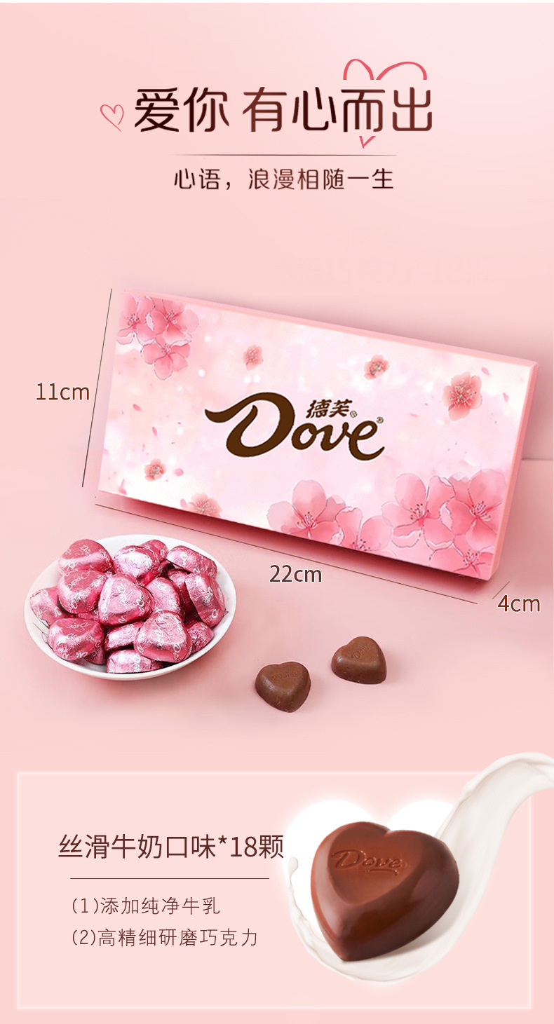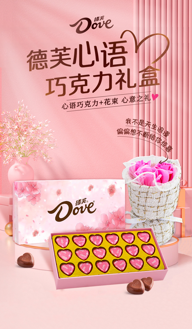 德芙牛奶巧克力18粒心语礼盒小香风花束带同款手提带 生日七夕情人节礼物创意零食实用礼品花束