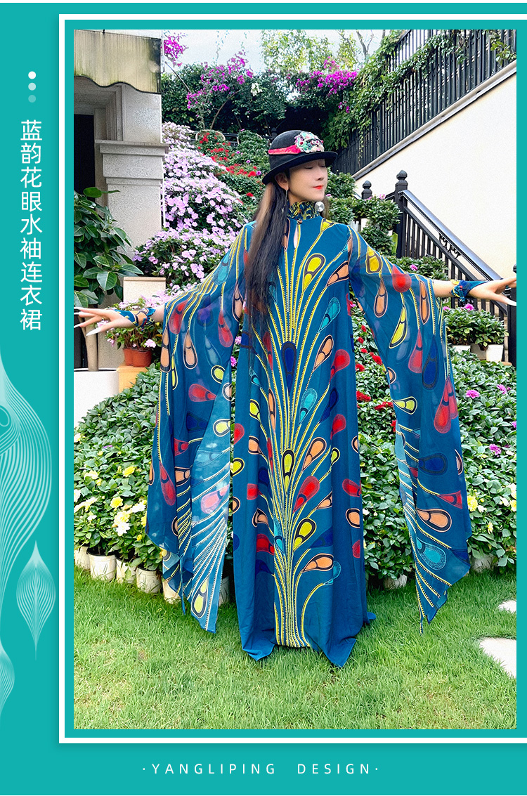 蓝韵花眼水袖连衣裙 |杨丽萍老师同款 | 现货加急发