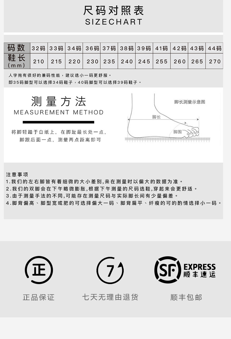 (人字拖有很好的兼码性,选择自己平时运动鞋的尺码即可)