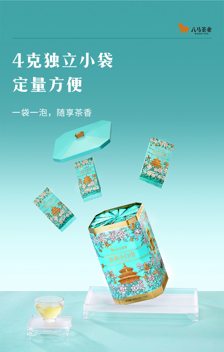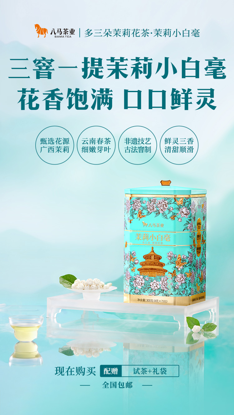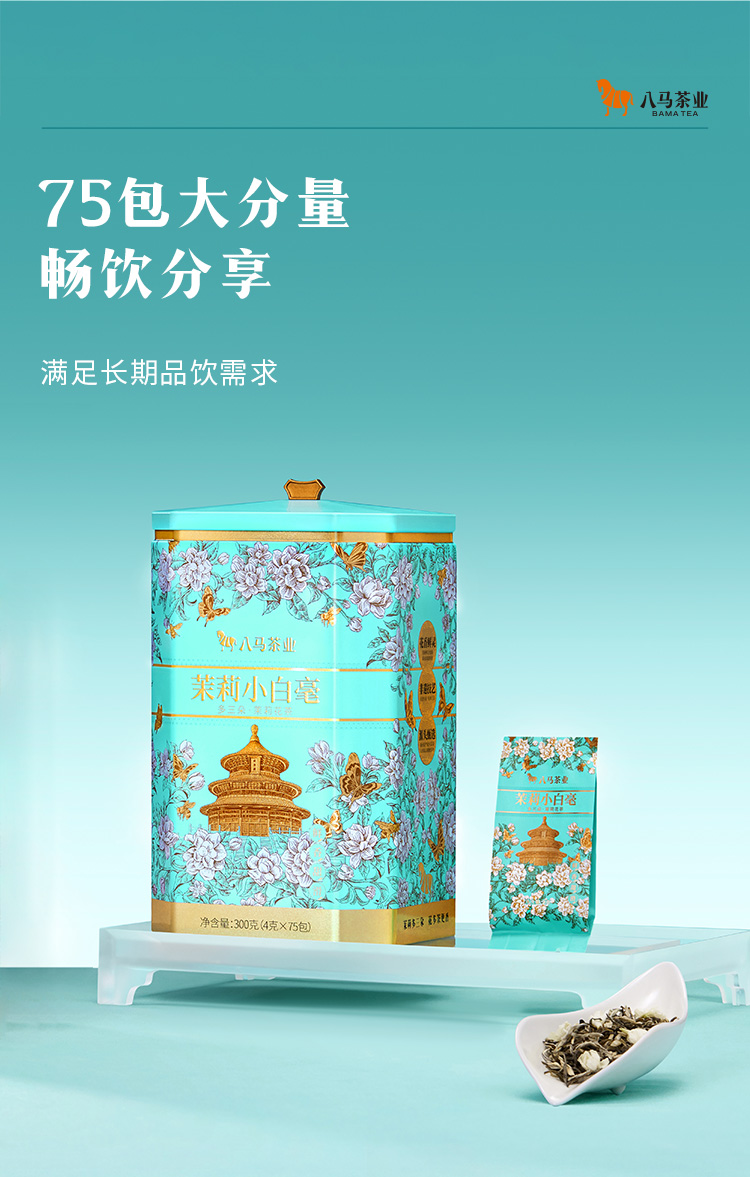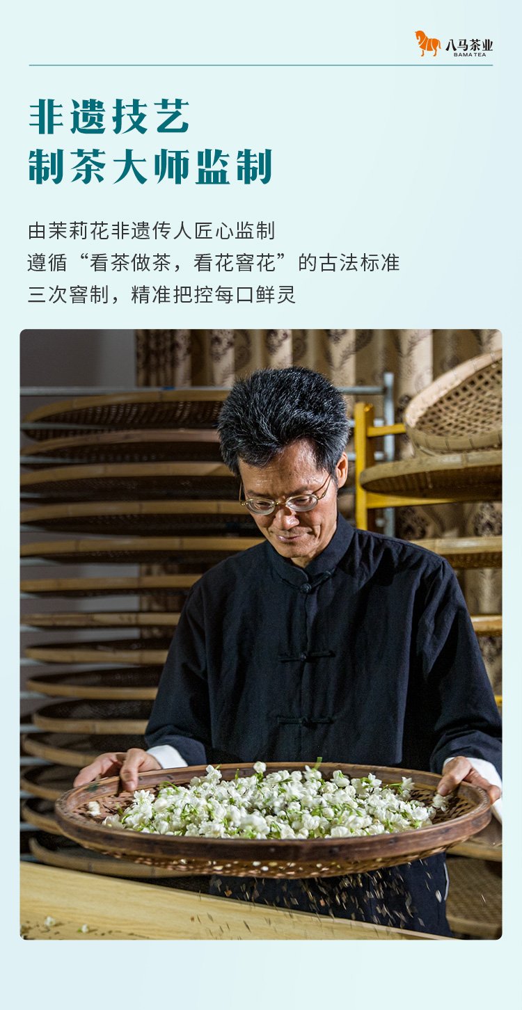 八马茶业|多三朵茉莉花茶·茉莉小白毫鲜茉莉真花香茶味足