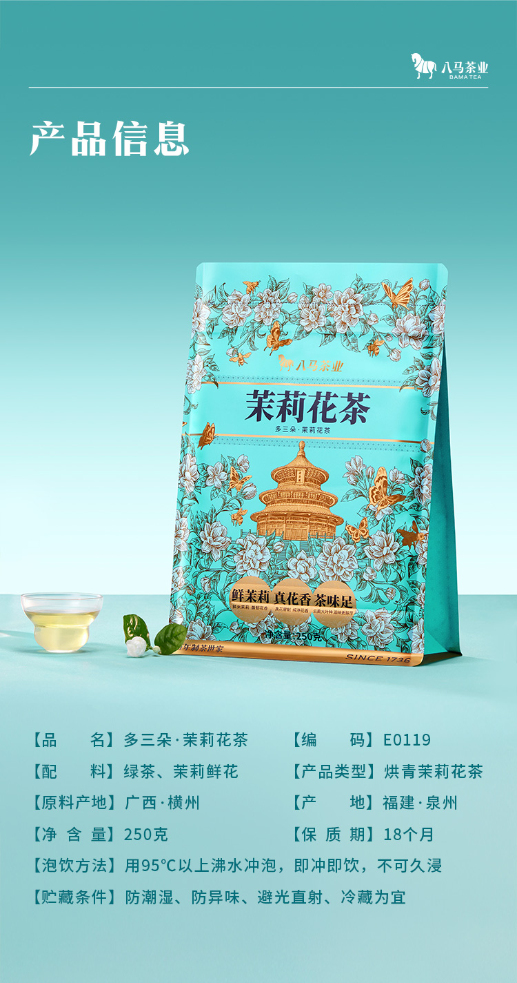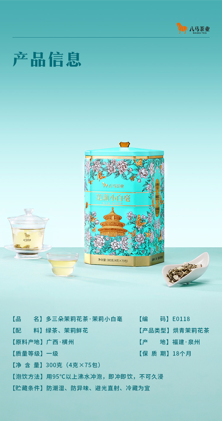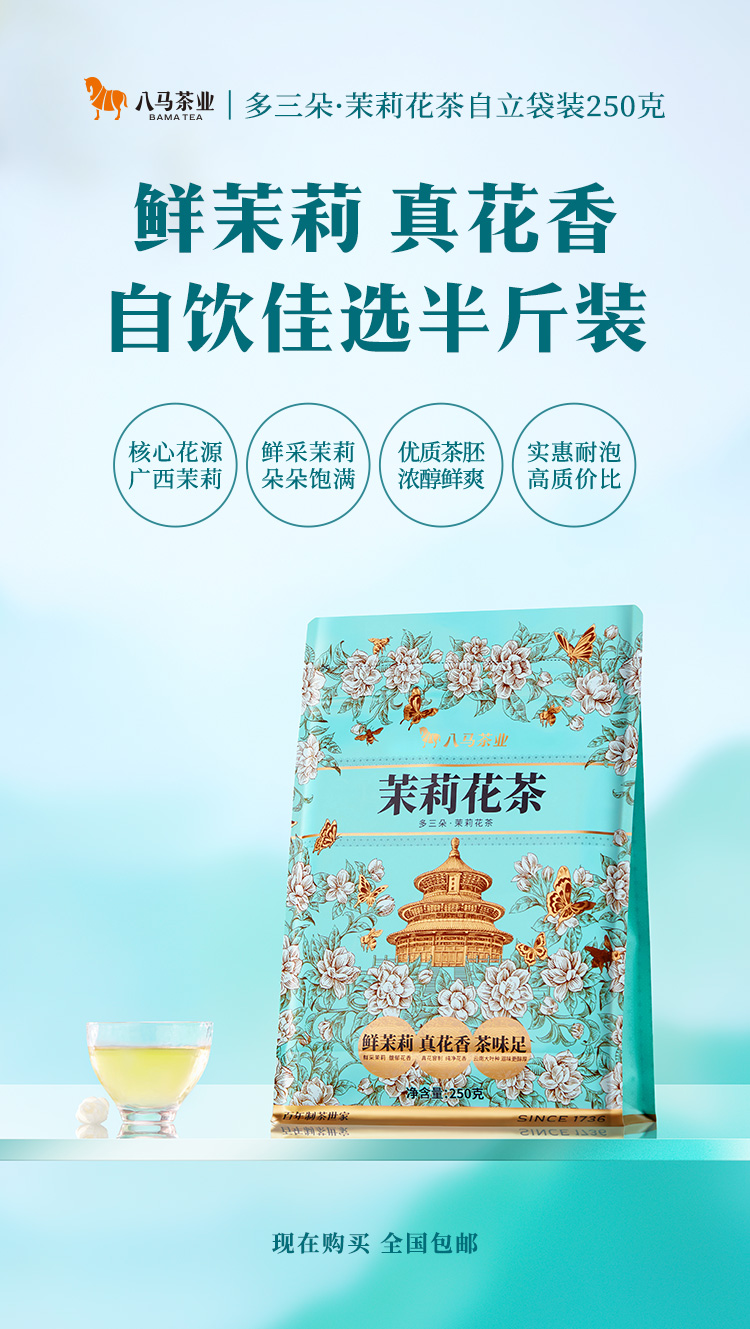 八马茶业|多三朵茉莉花茶·茉莉小白毫鲜茉莉真花香茶味足