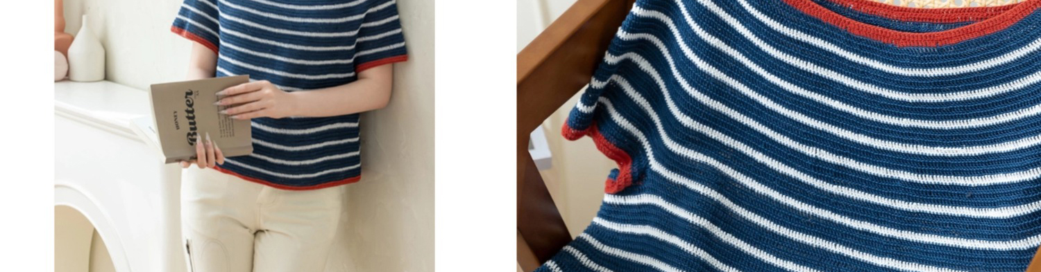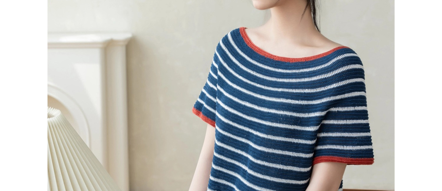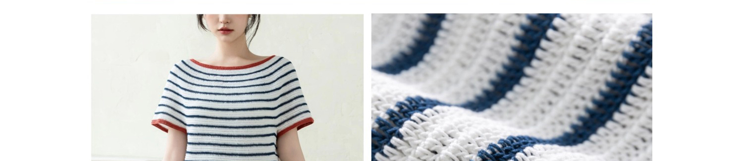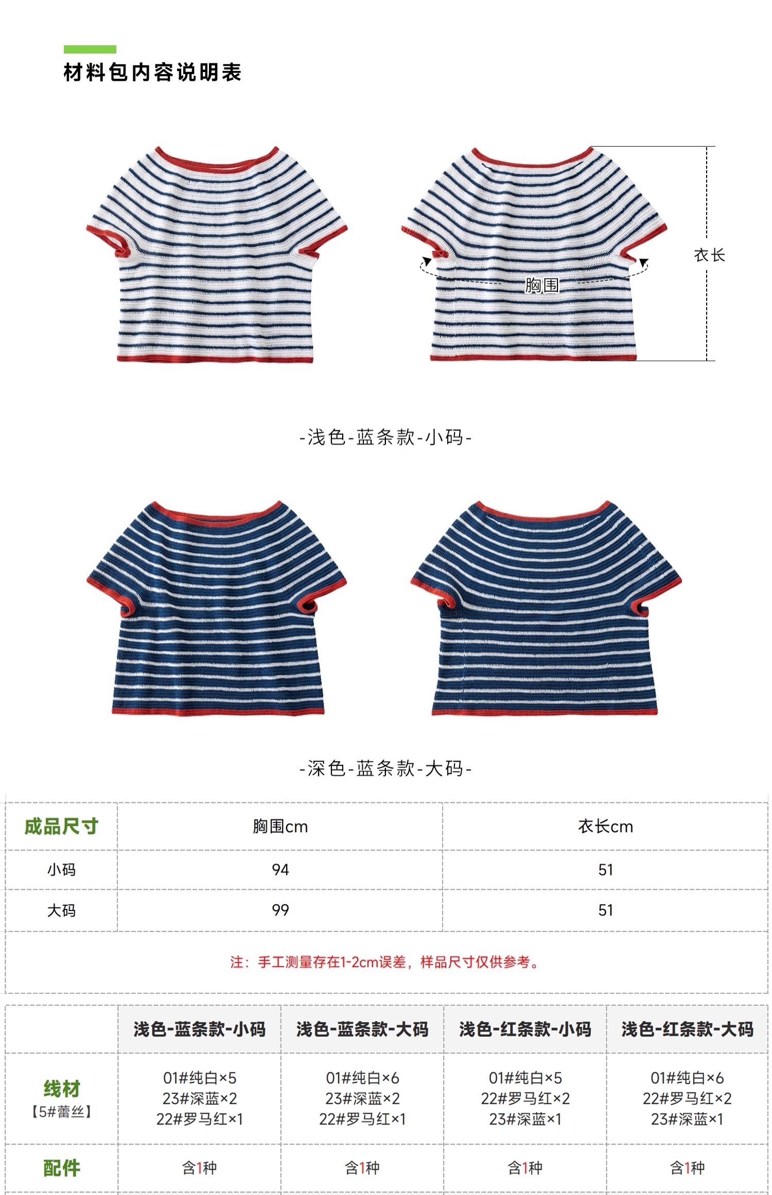 苏苏姐家至简育克条纹短袖手工diy钩针棉线蕾丝衣服毛线团材料包