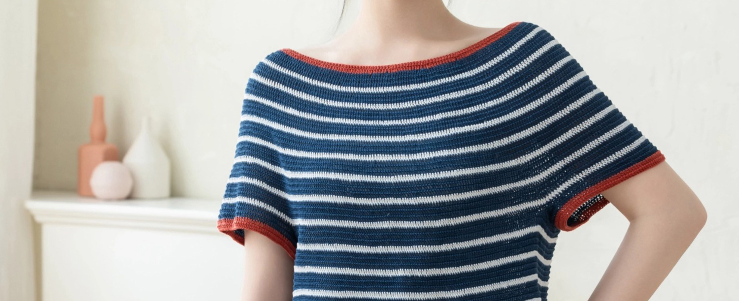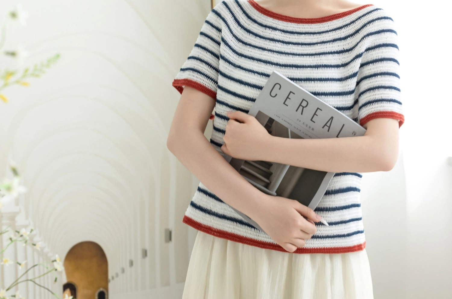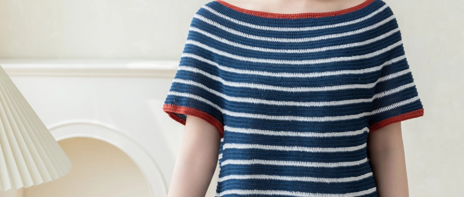 苏苏姐家至简育克条纹短袖手工diy钩针棉线蕾丝衣服毛线团材料包