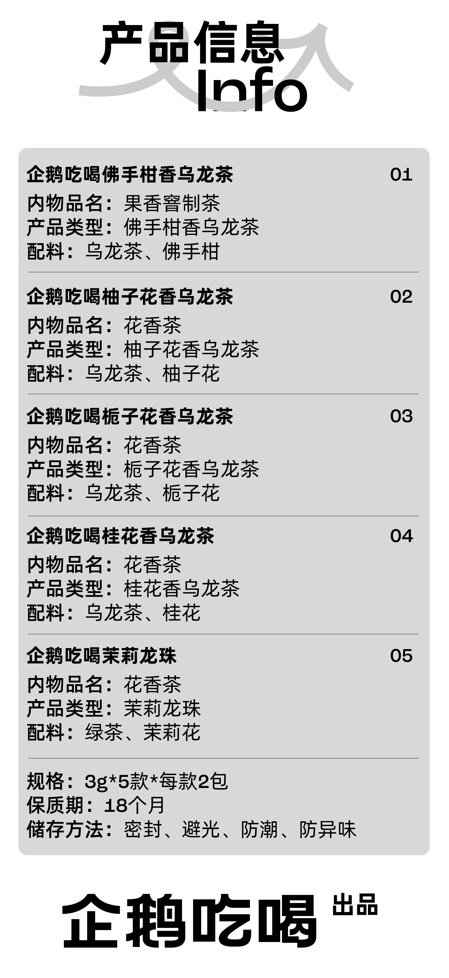 企鹅吃喝|福建花果香原叶茶 时令鲜花鲜果窨制乌龙茶绿茶 5种风味 佛手柑/柚子花/栀子花/桂花/茉莉龙珠