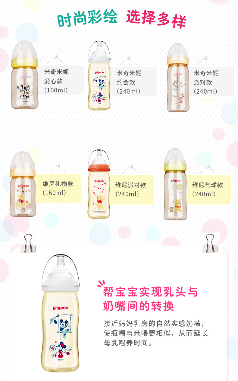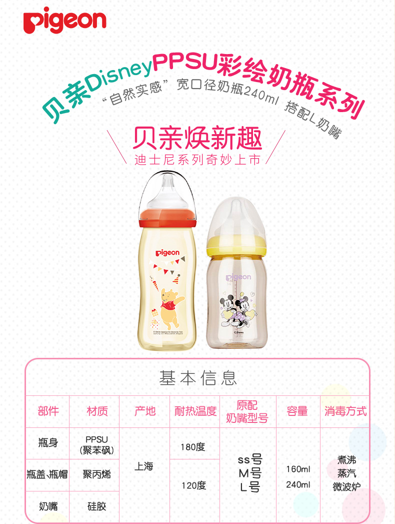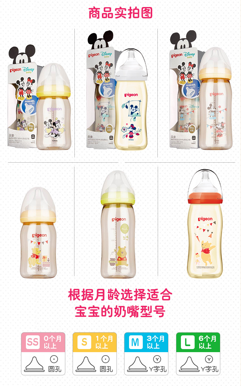 【母婴】贝亲宽口径PPSU彩绘奶瓶160ml/240ml AA159/PIG-AA164