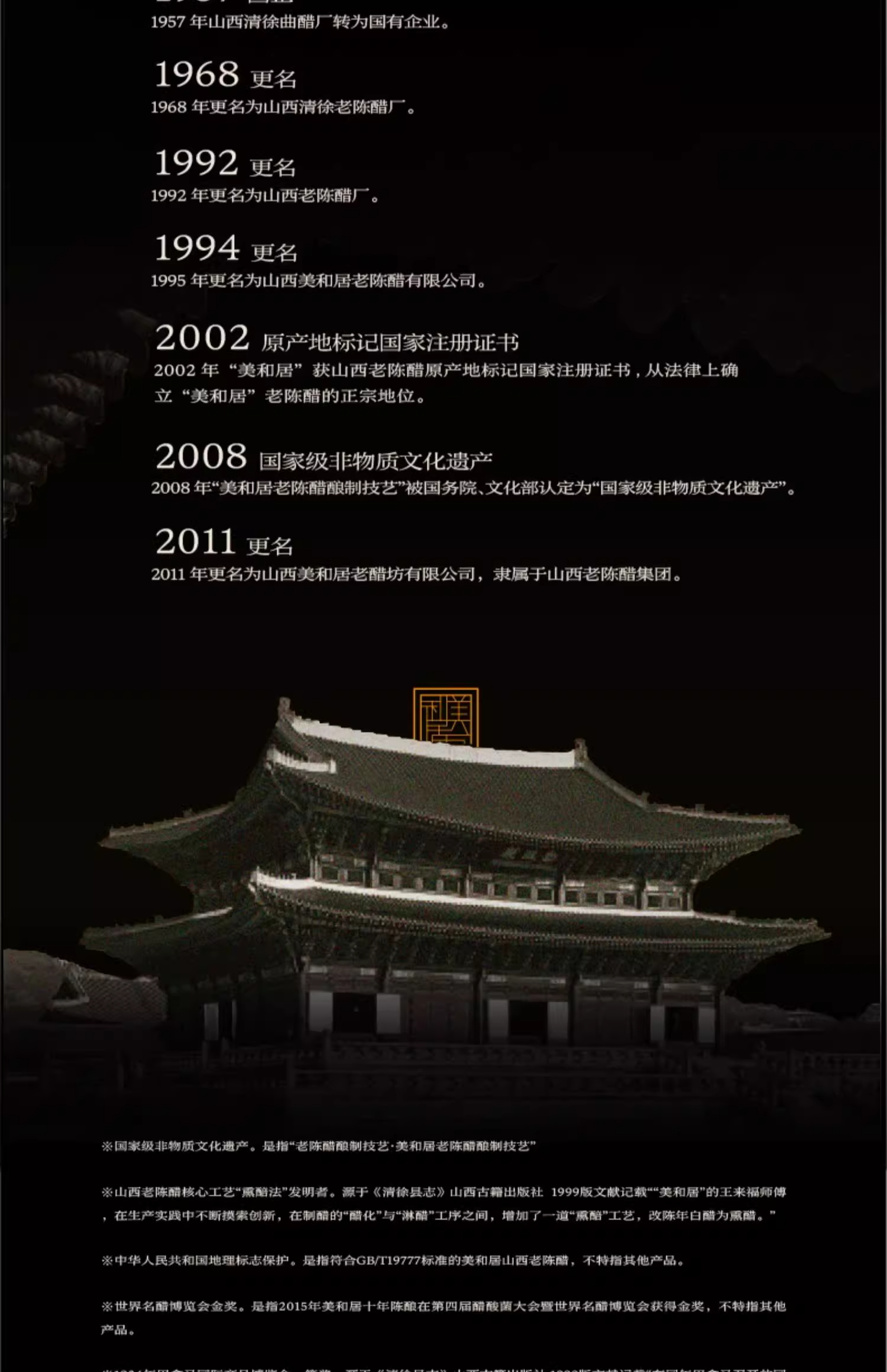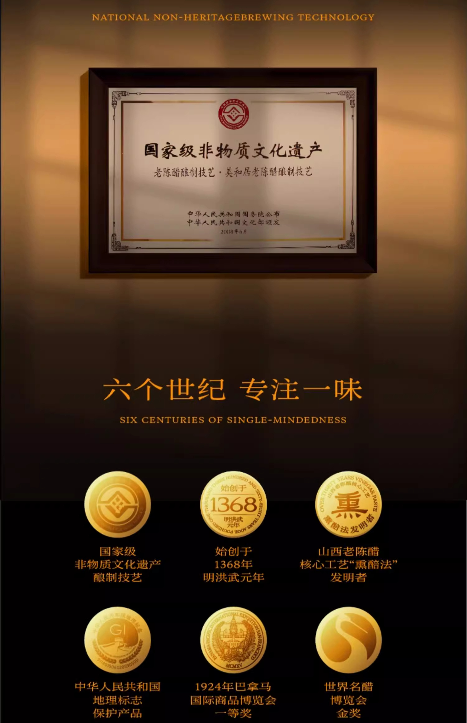 - 美和居始创于1368年,为山西老陈醋开创者,国家级非物质文化遗产酿制技艺,国家地理标志保护产品!