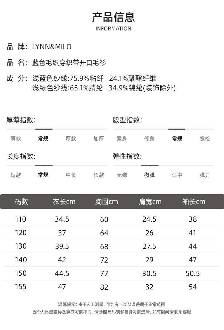 【春上新】【3.8折】8楼琳麦罗 LYNNMILO 蓝色毛织穿织带开口毛衫 吊牌价:798元 活动价:303元