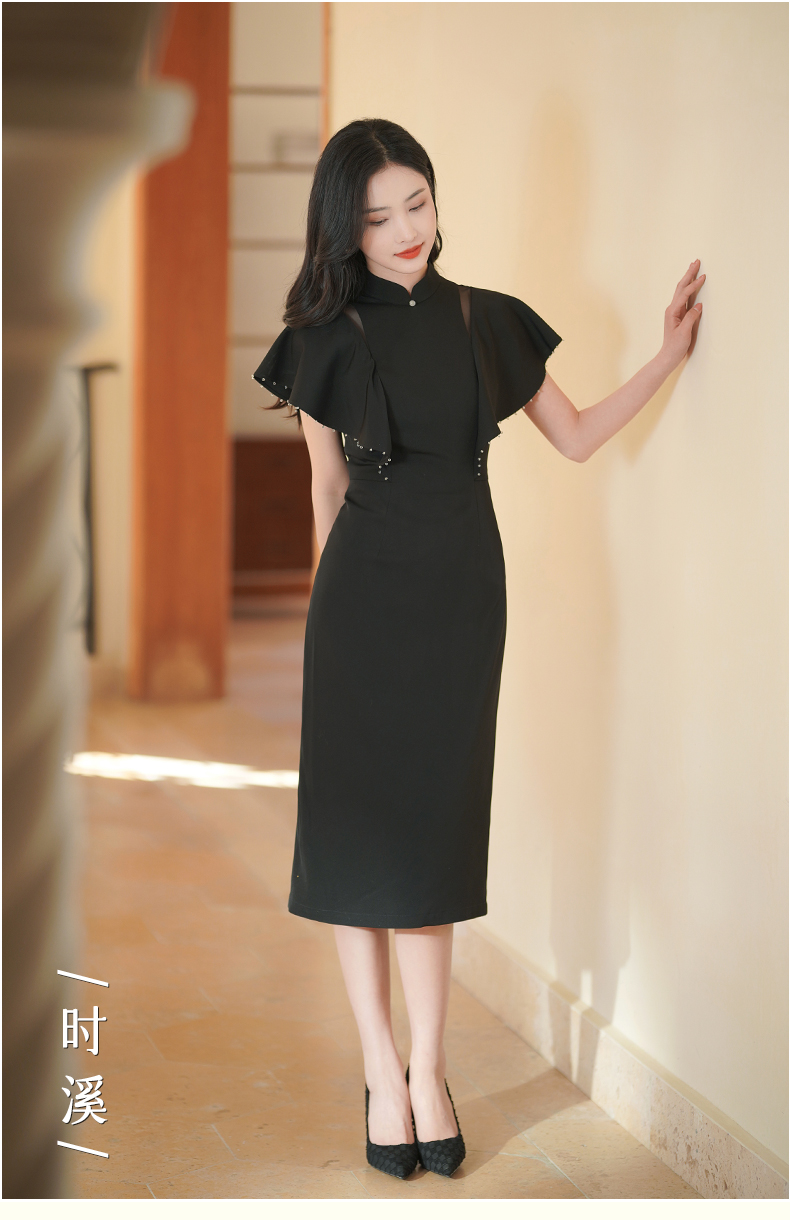 这件连衣裙设计黑色,简约大气,能让我们在任何场景里穿着。