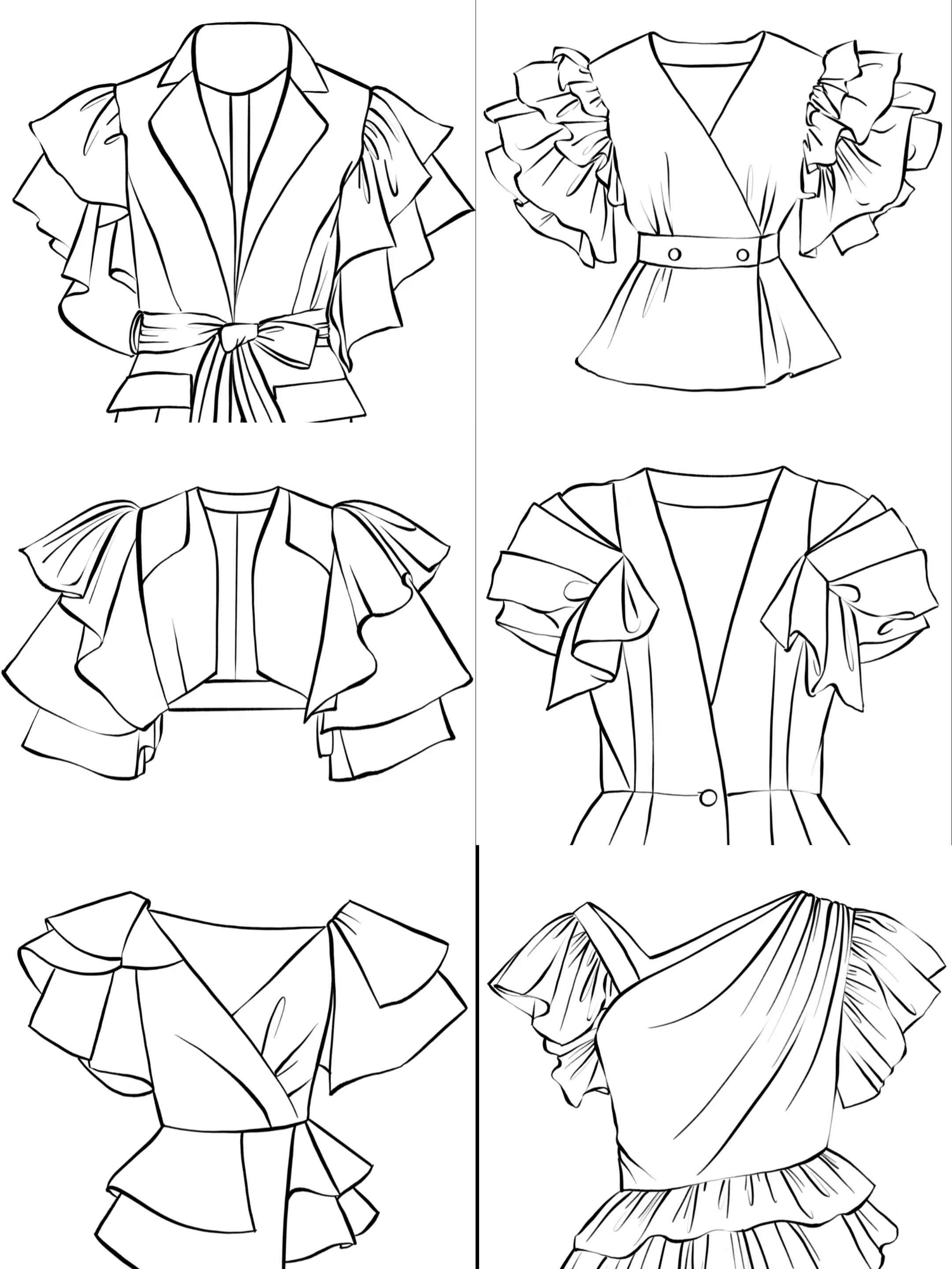 市场大绝大多数将这种剪裁方式应用在袖口上。 我们也给大家做过很多款蝴蝶袖的连衣裙,不过因为没有设计师来跟大家碎碎念, 估计大家可能也没有注意自己带回家的裙子到底属于什么版型。