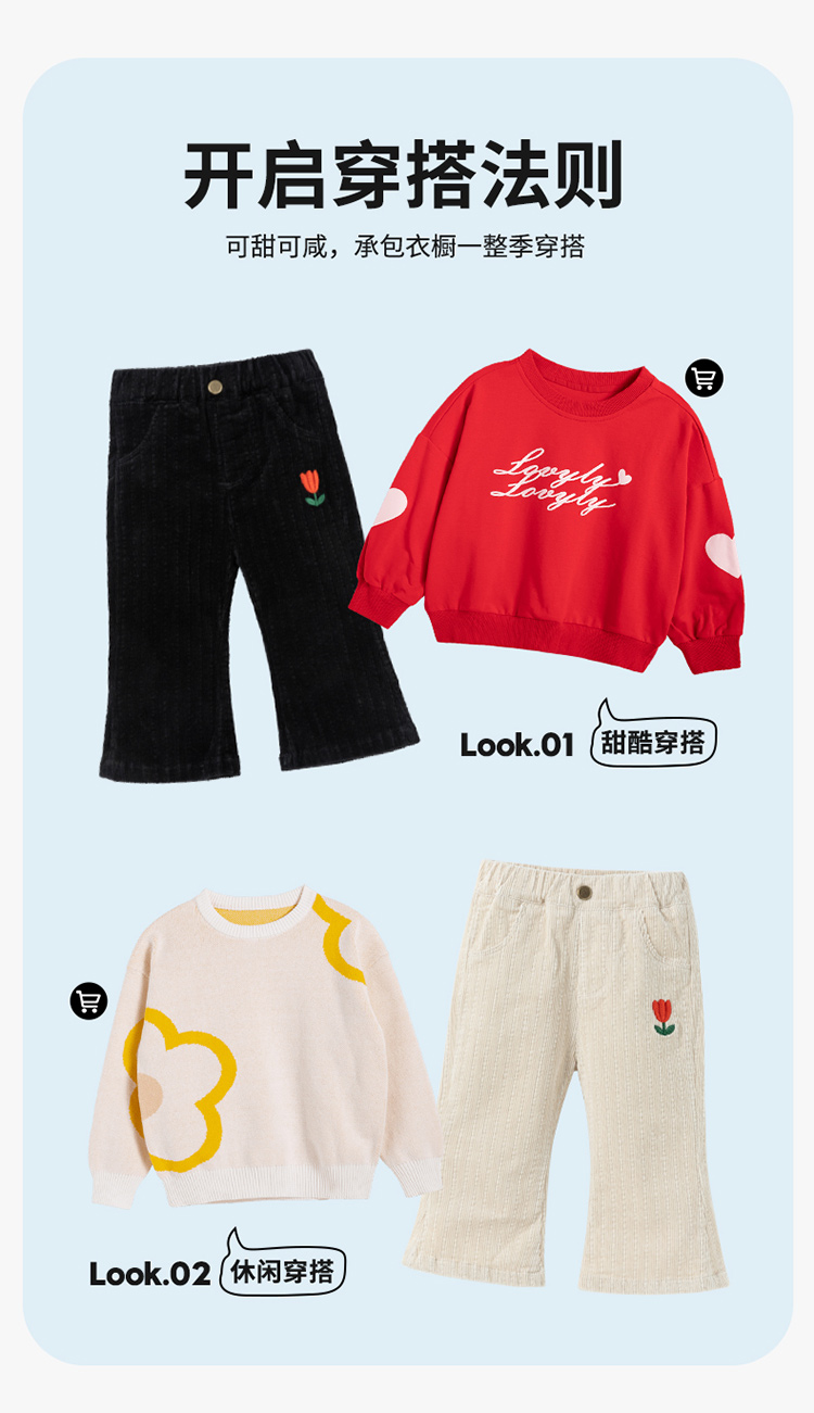 贝贝怡裤子秋季女童长裤喇叭裤秋冬休闲儿童洋气秋装ZB3CK016