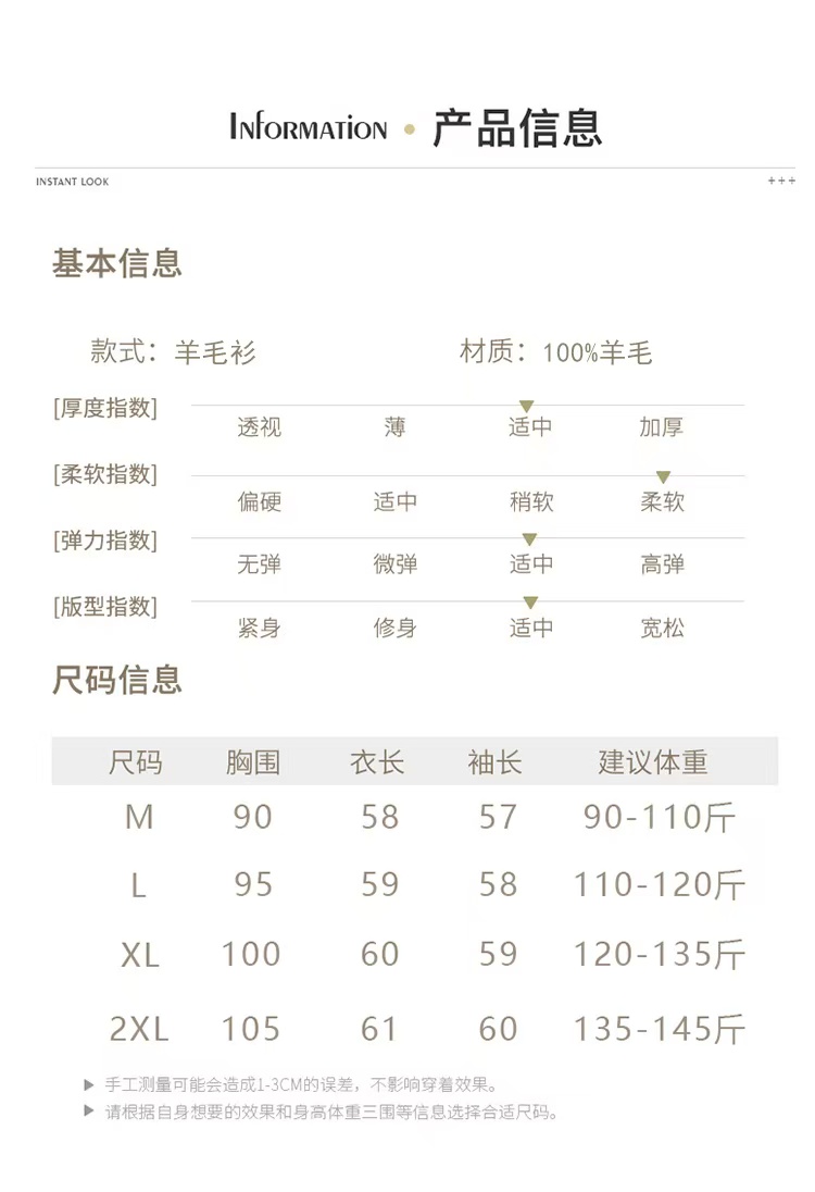 无缝一体成型,100%澳洲新羊毛,中等厚款,细腻柔软,绝不是薄打底,轻盈保暖,回弹性极好。
