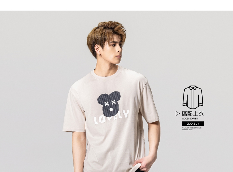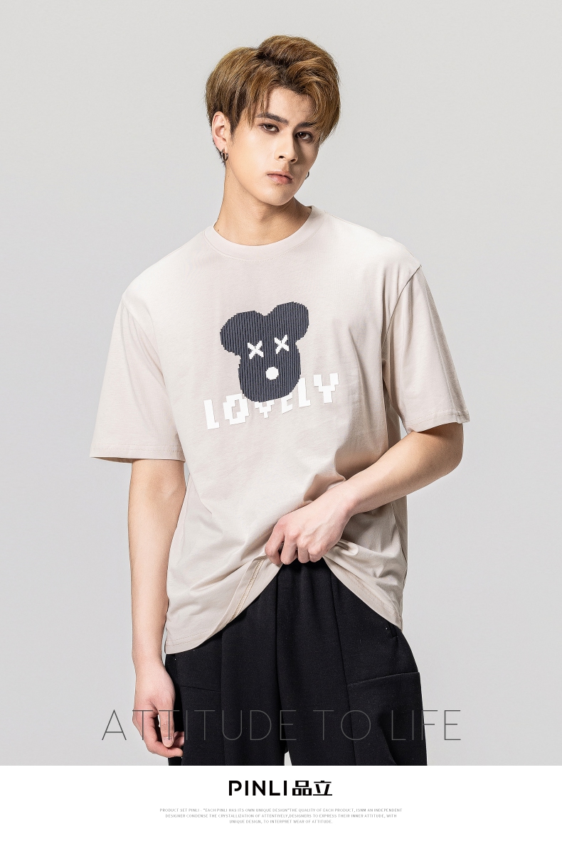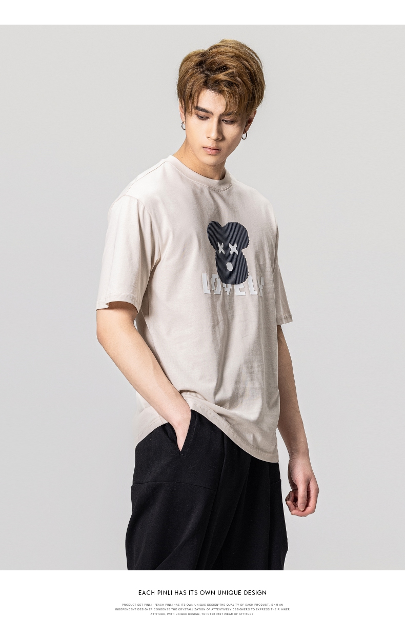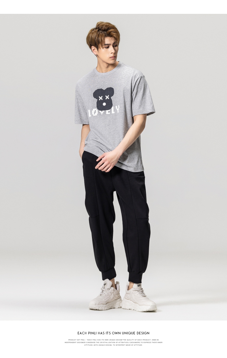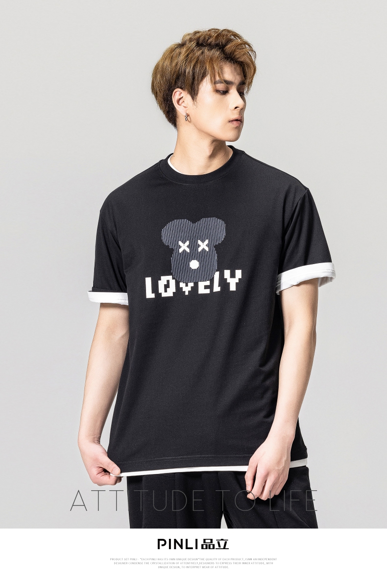 PINLI品立夏季新款纯棉印花T恤男士休闲短袖体恤BG231111060