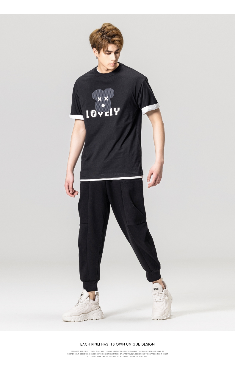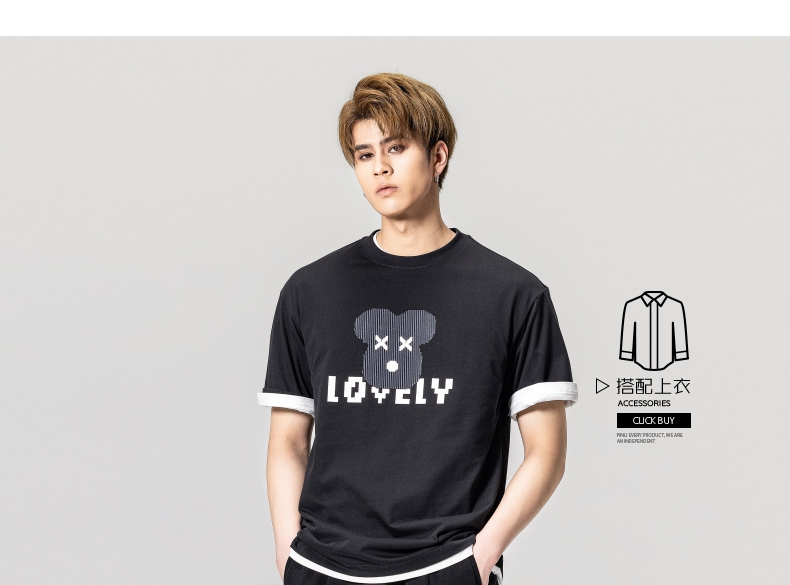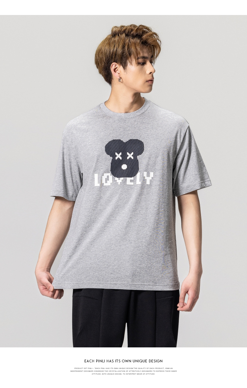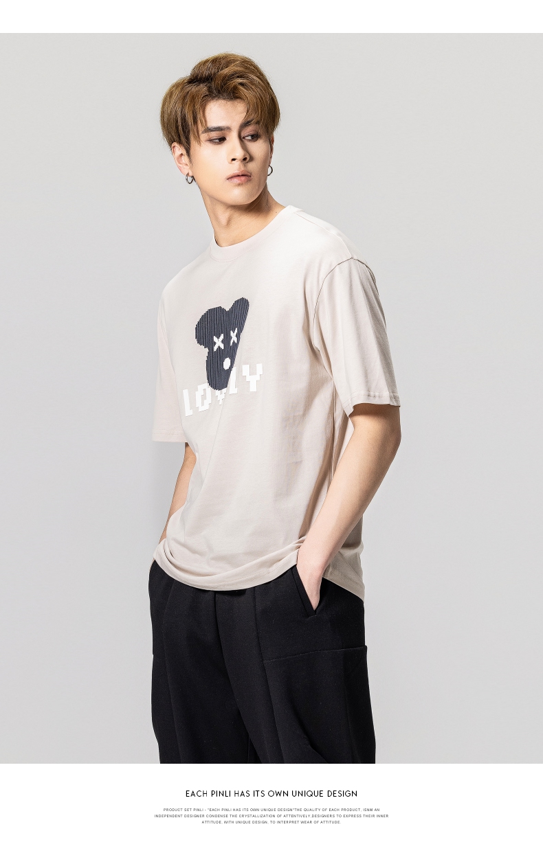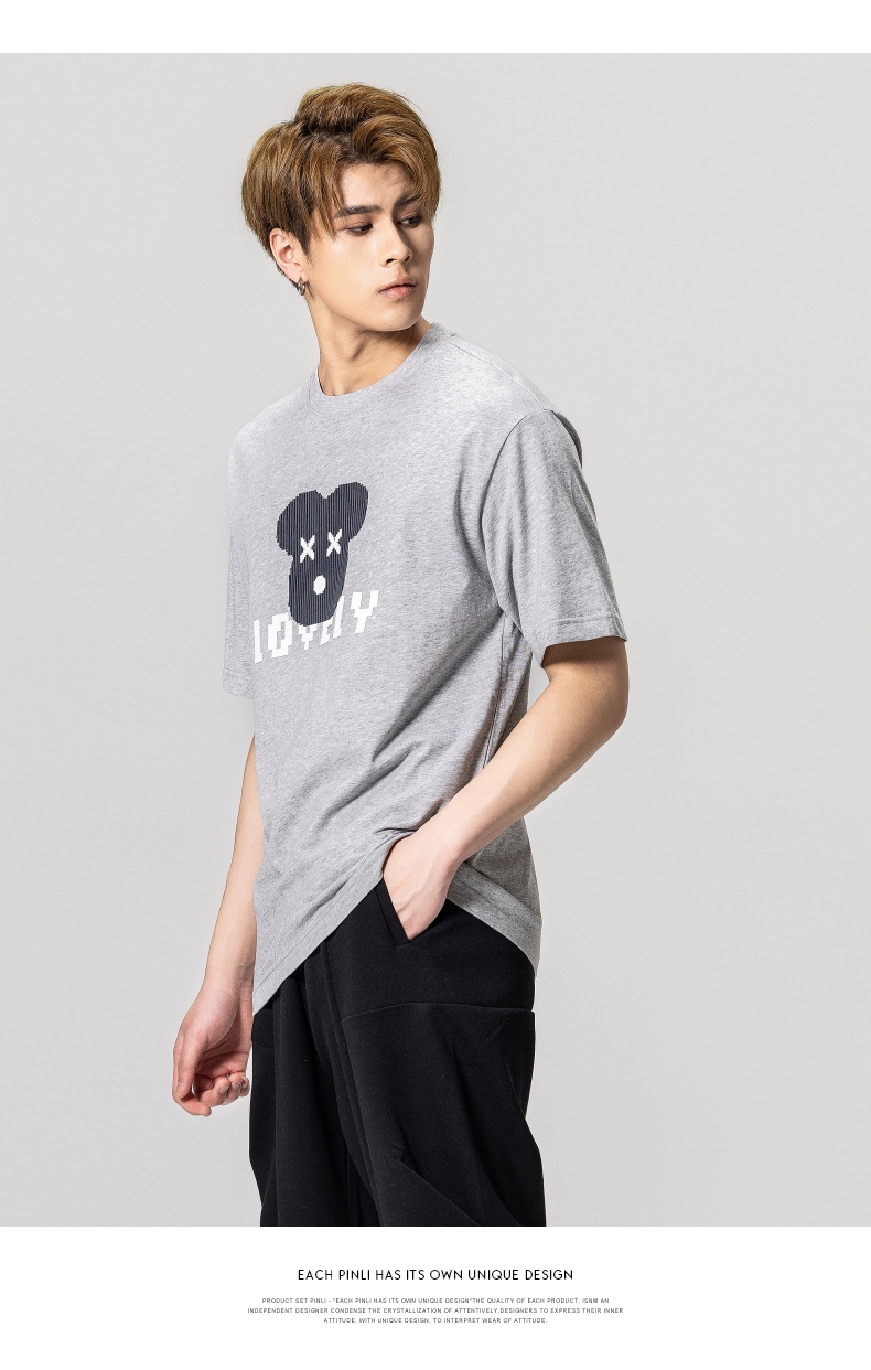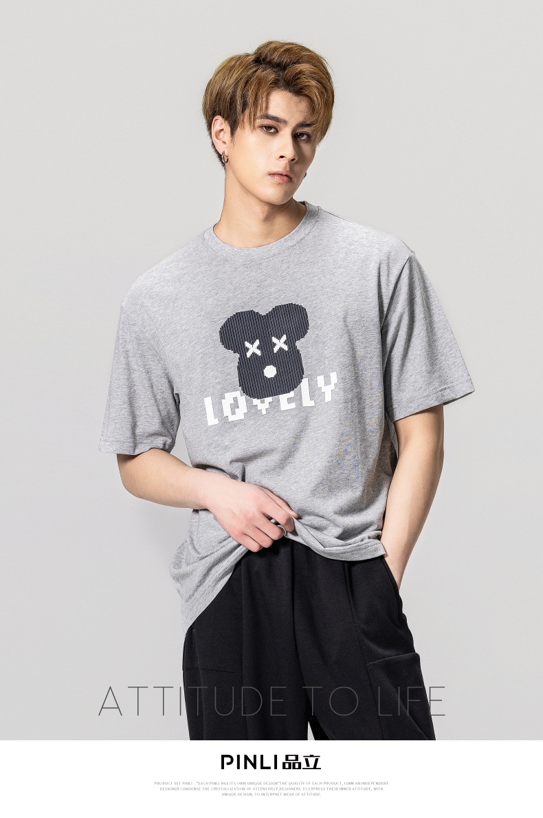 PINLI品立夏季新款纯棉印花T恤男士休闲短袖体恤BG231111060