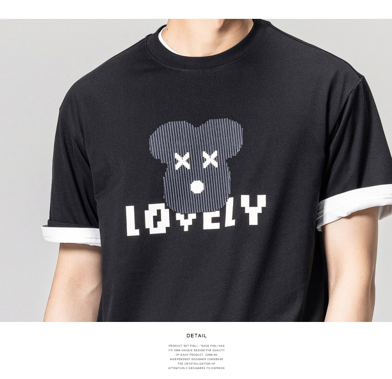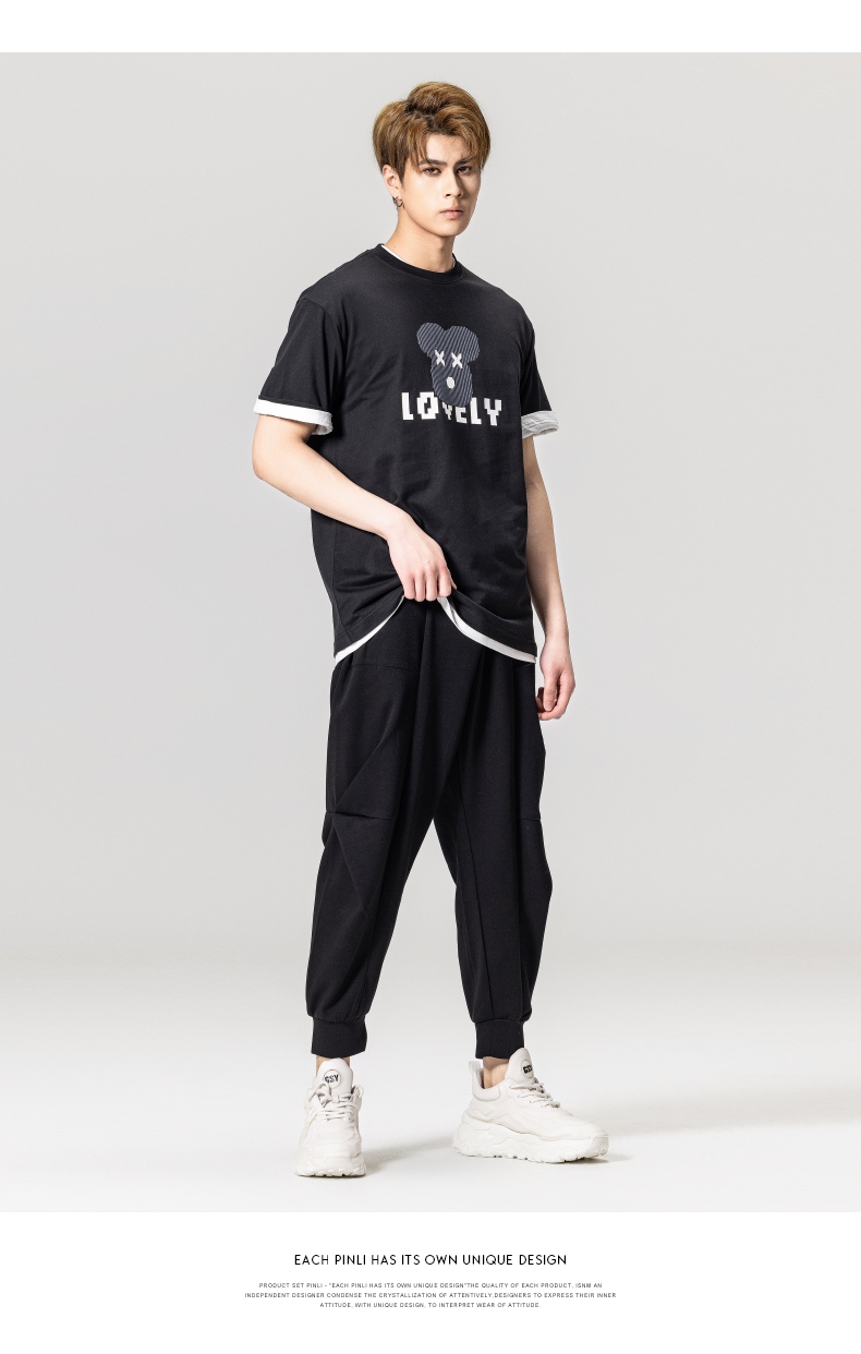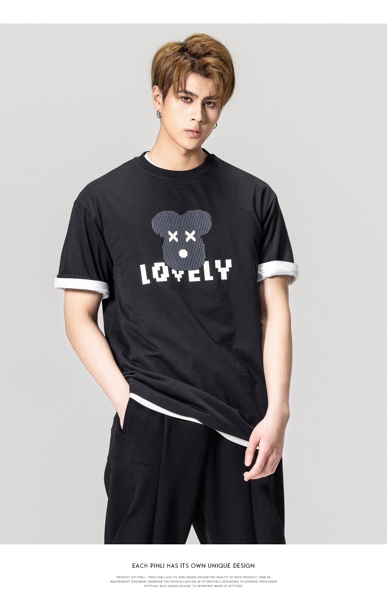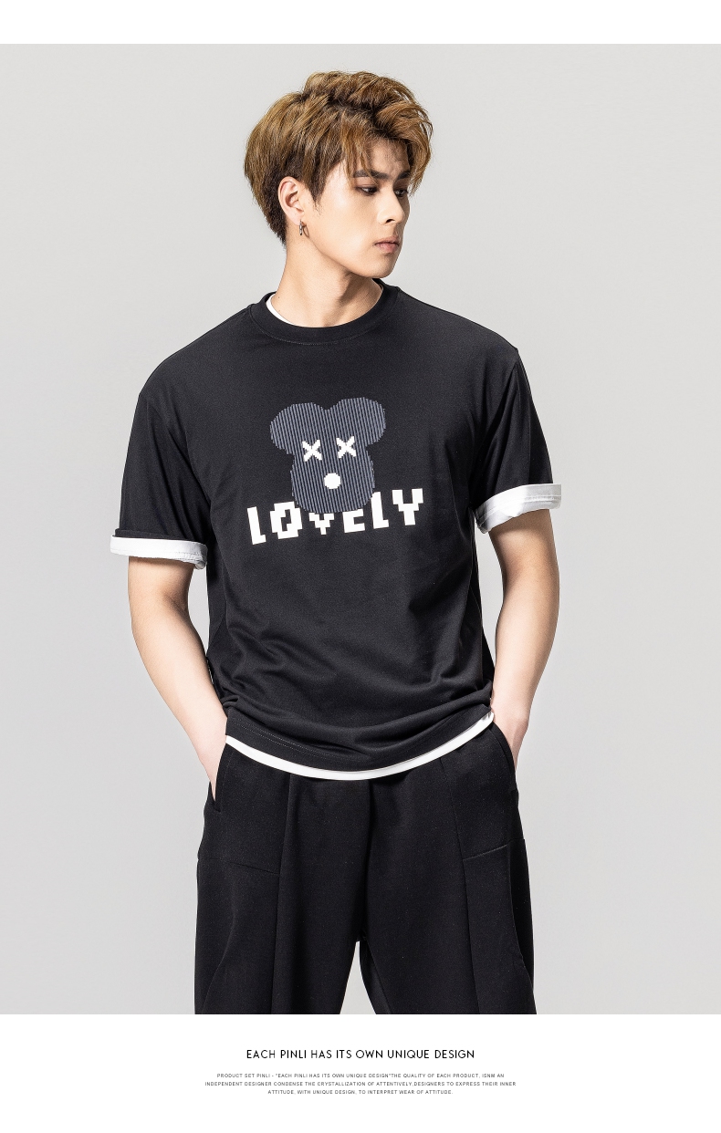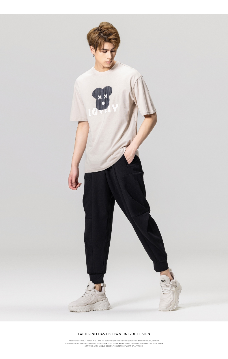PINLI品立夏季新款纯棉印花T恤男士休闲短袖体恤BG231111060