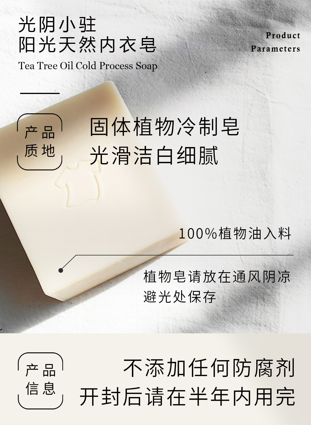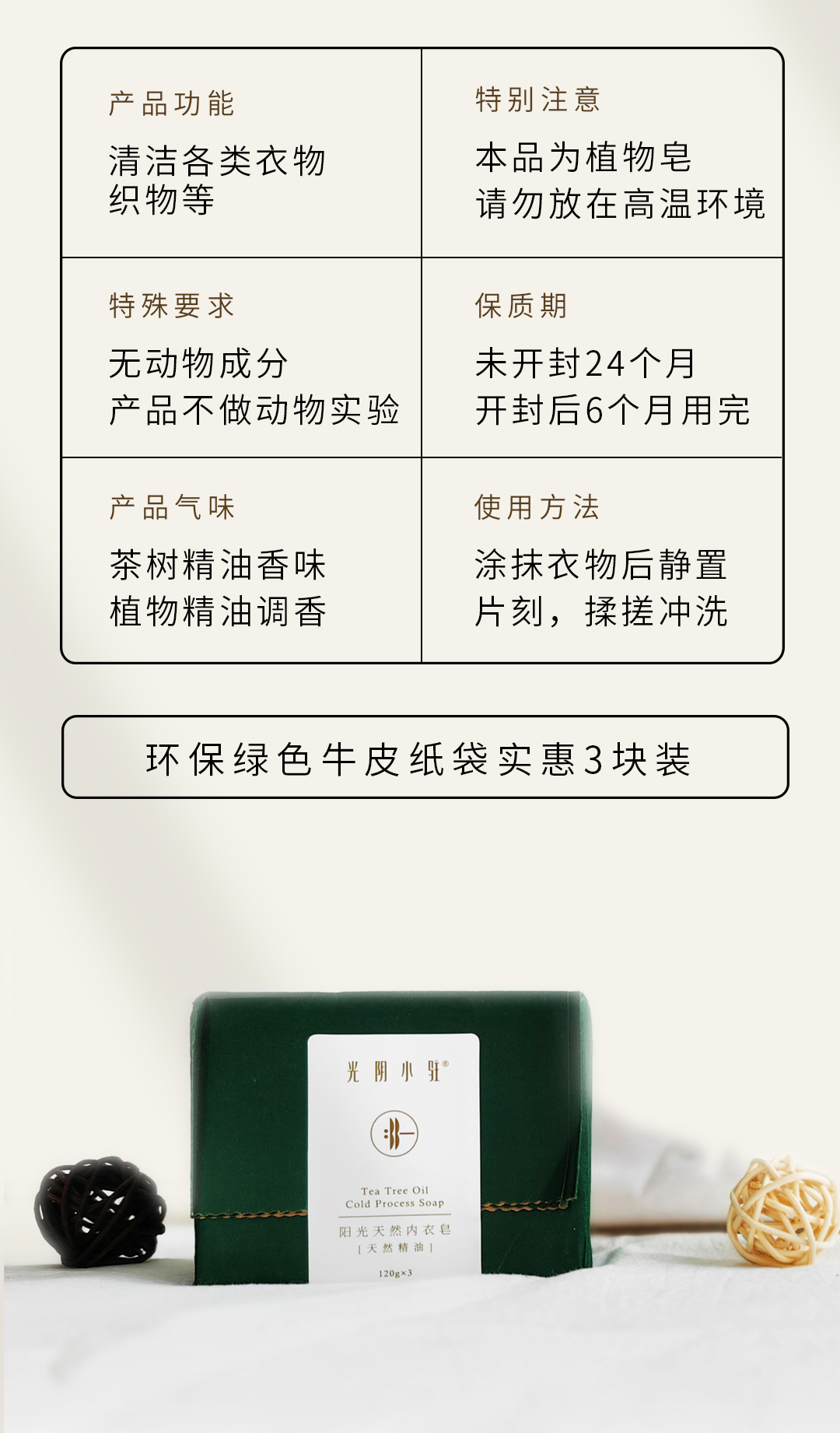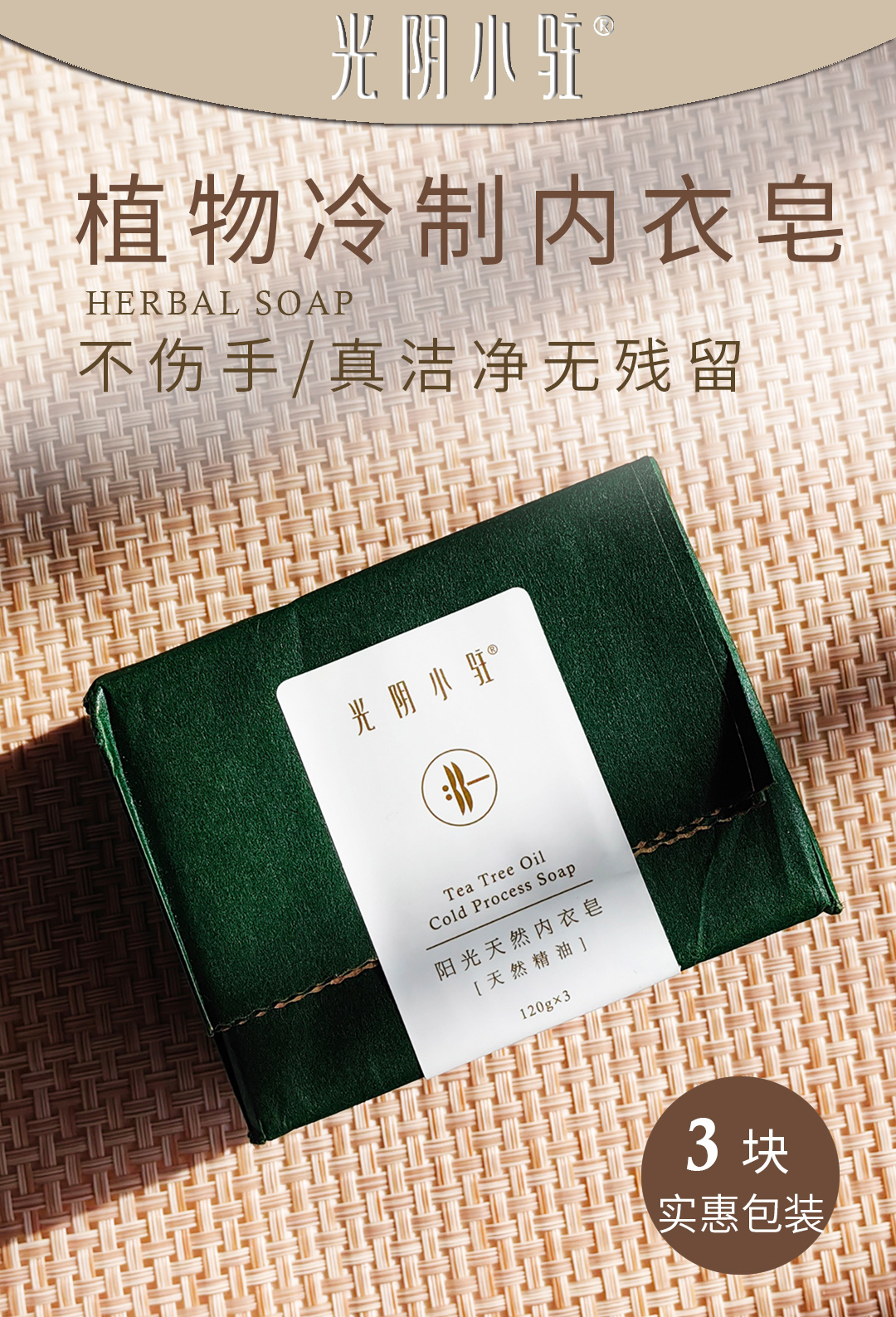 S光阴小驻茶树阳光内衣皂3块装 手工精油皂 易冲洗无残留 高效去渍不伤手