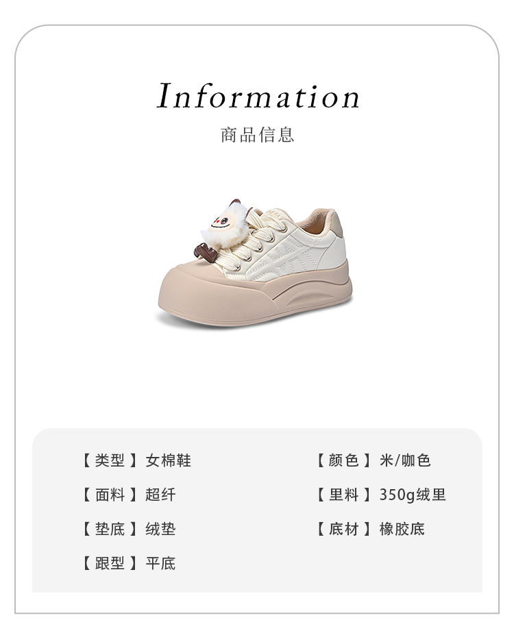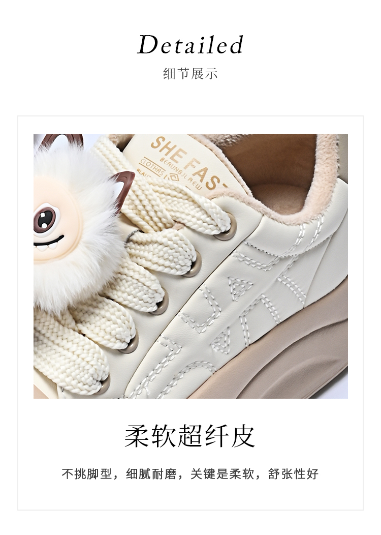 经典鲨2025冬季专柜新款玩偶挂件加绒厚底舒适面包鞋棉鞋女KW194-558151