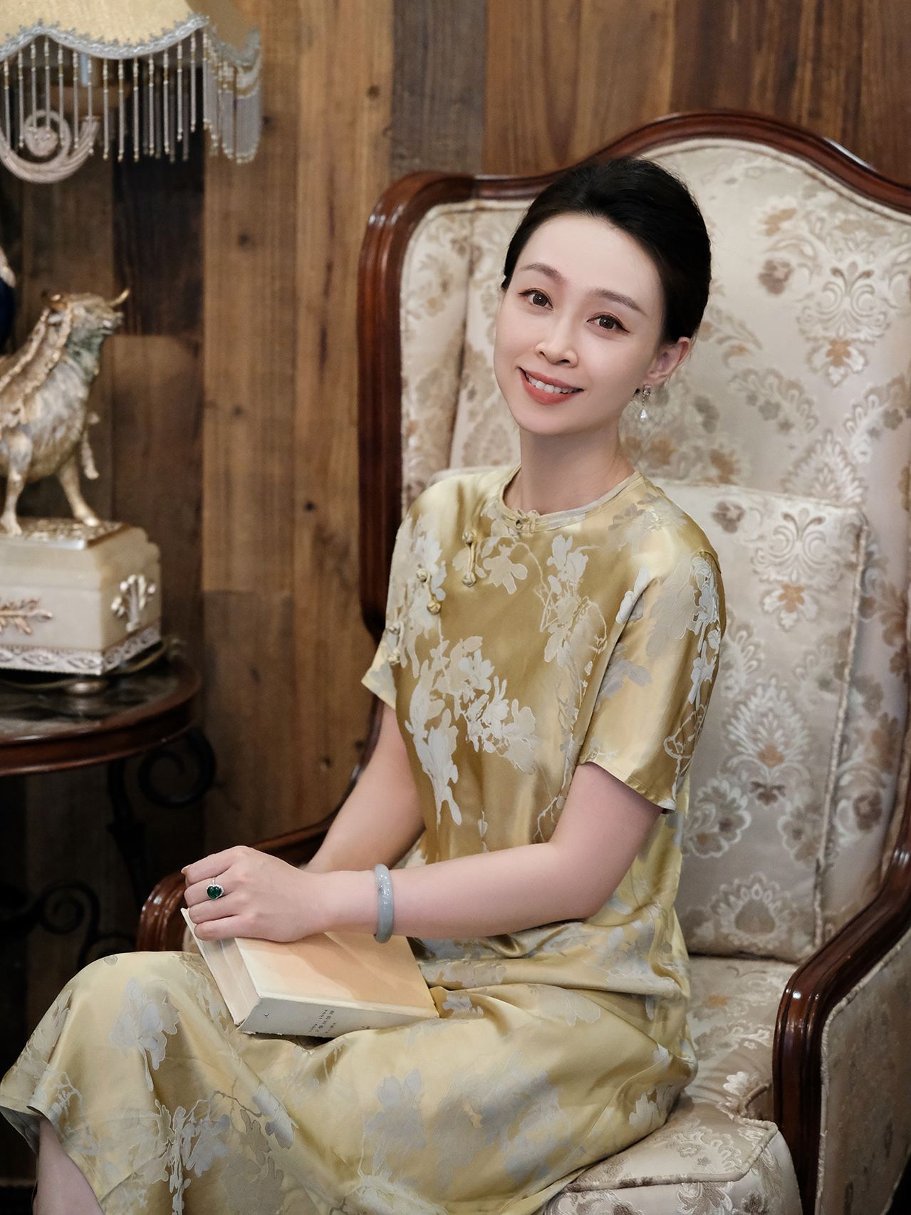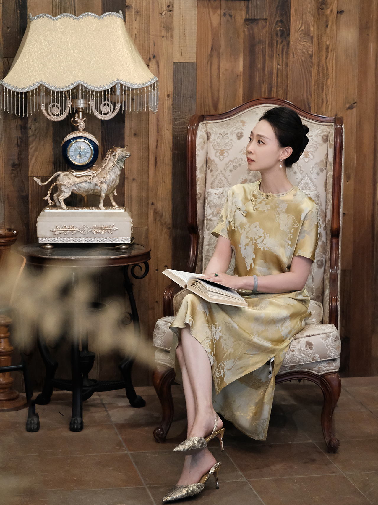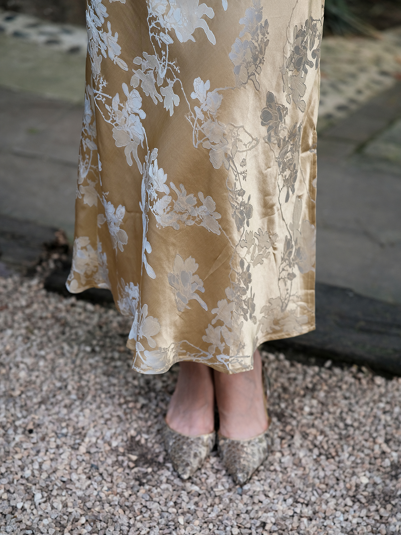 盛唐牡丹 |香槟金真丝提花旗袍裙