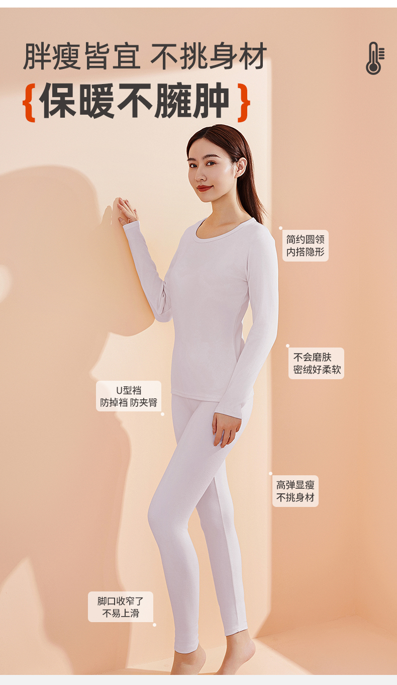 雅黛丽秋衣秋裤套装女薄款亲肤舒适打底衫简约磨绒显瘦保暖内衣