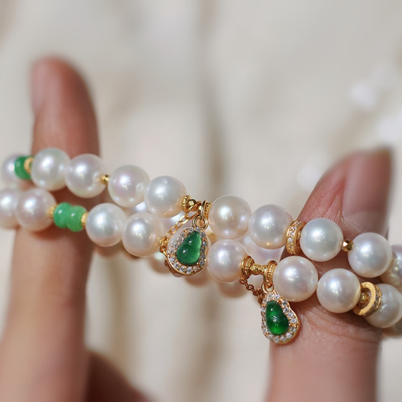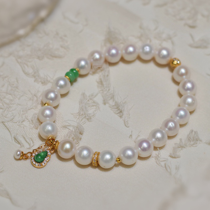 天然淡水珍珠单圈手链,278/条,7.5毫米左右,搭配A货翡翠,珍珠,古法银配饰等