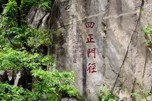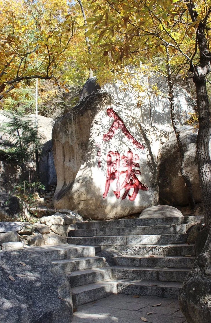 游人刚刚步入山门,到“入胜”景点,壁壁题刻便迎面而至。“入胜”为荣禄手书。荣禄,字仲华,清朝末年军机大臣兼直隶总督。入胜,寓意已进入佛教净地。它源于古诗“山色葱茏入胜境,空谷低回溪流声。