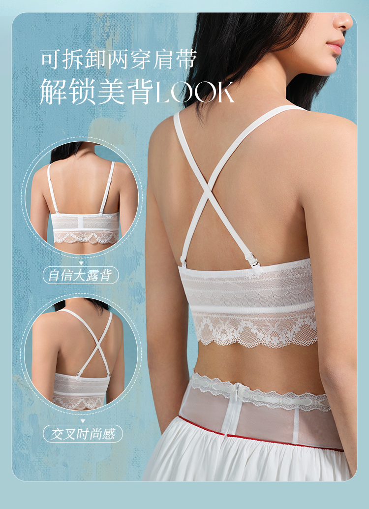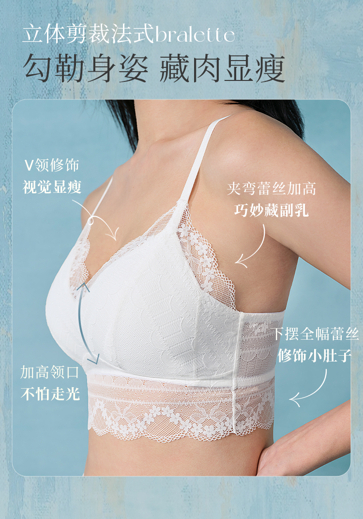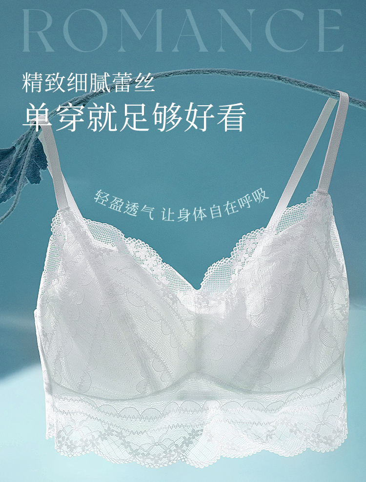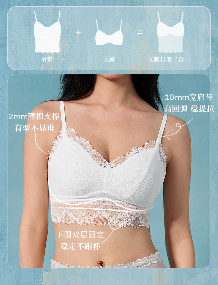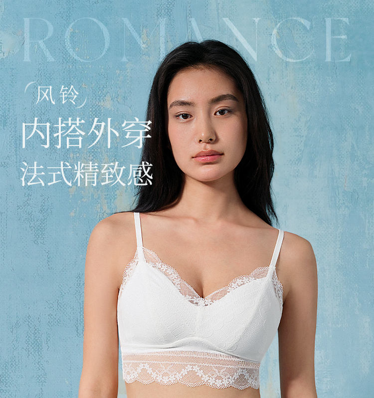 奶糖派风铃吊带无钢圈三角杯舒适承托蕾丝大胸显小女士文胸