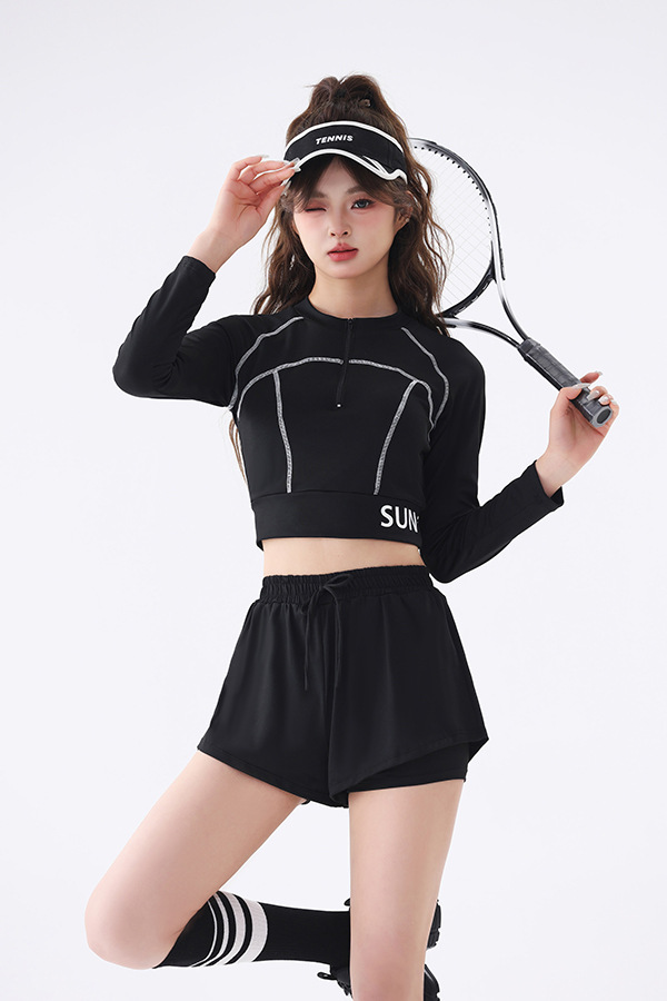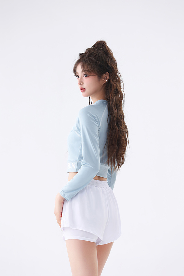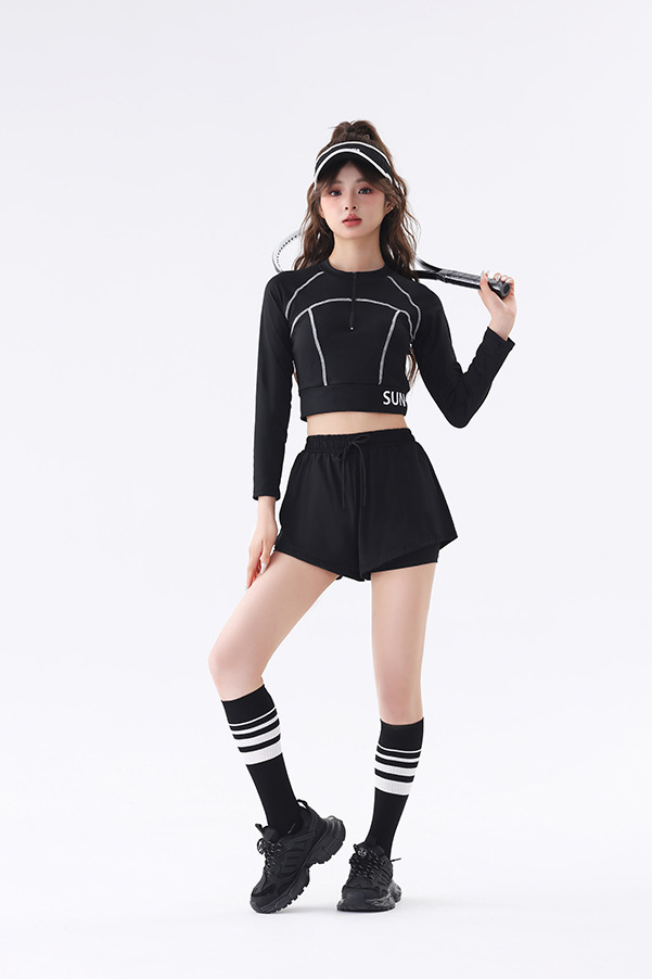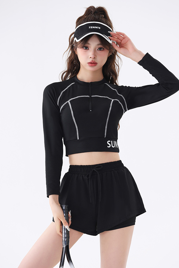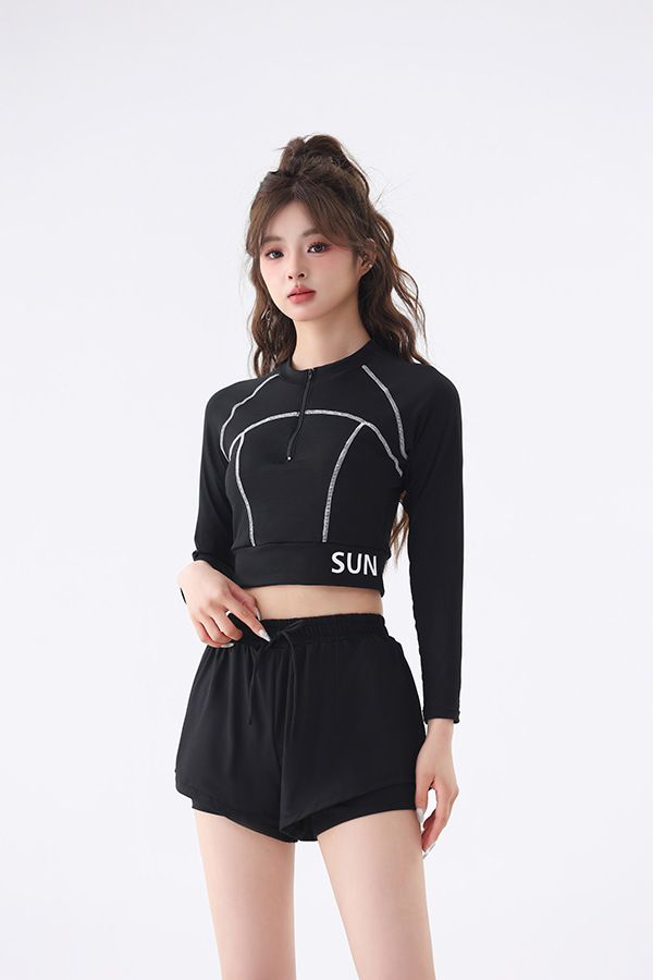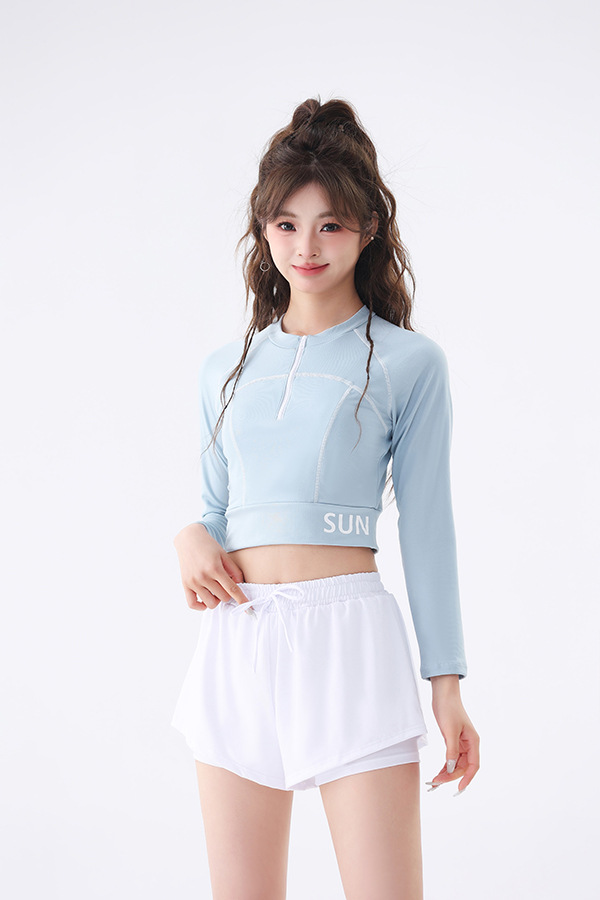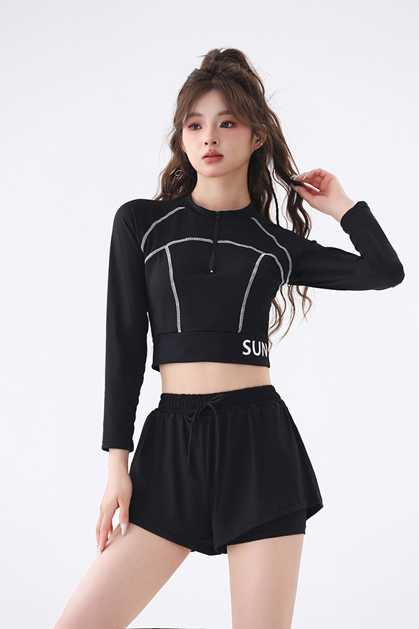【显高显瘦❗️视觉显瘦分体式泳衣】新款高级感,长袖游泳衣,保守分体学生上课遮肚显瘦泡温泉泳装L