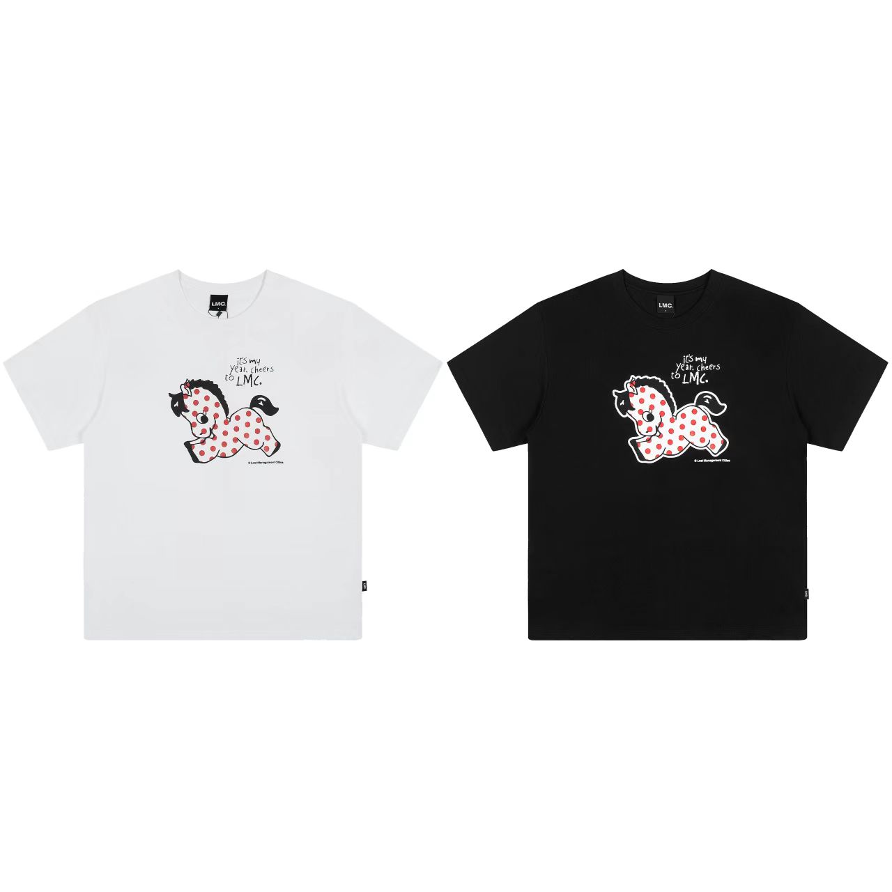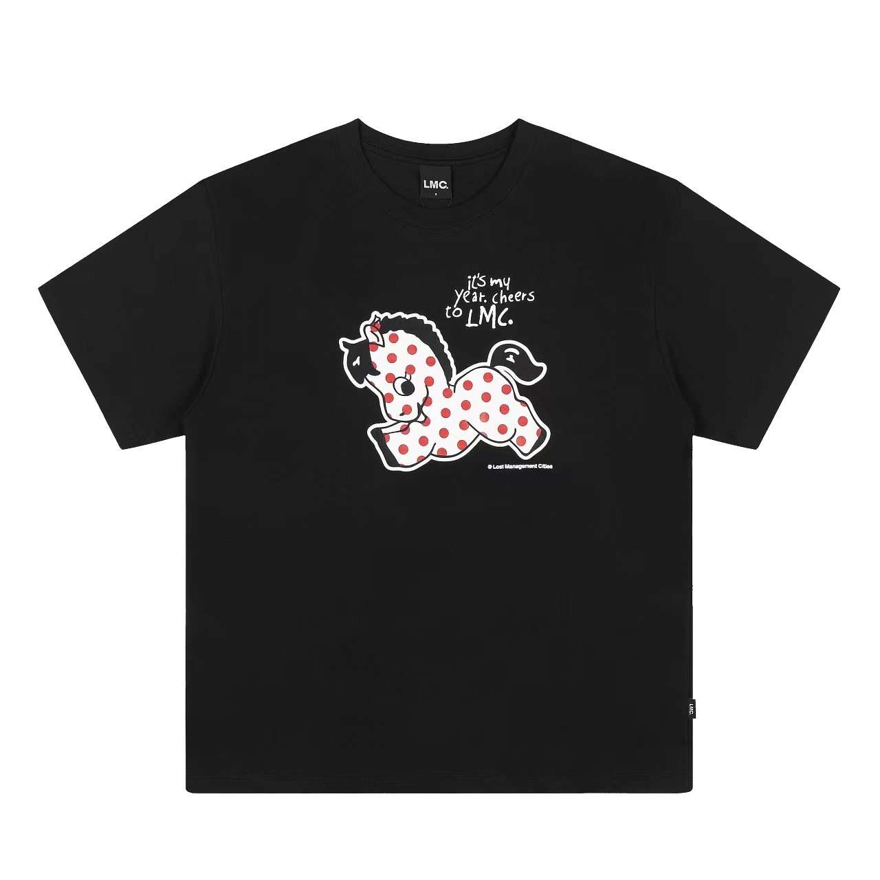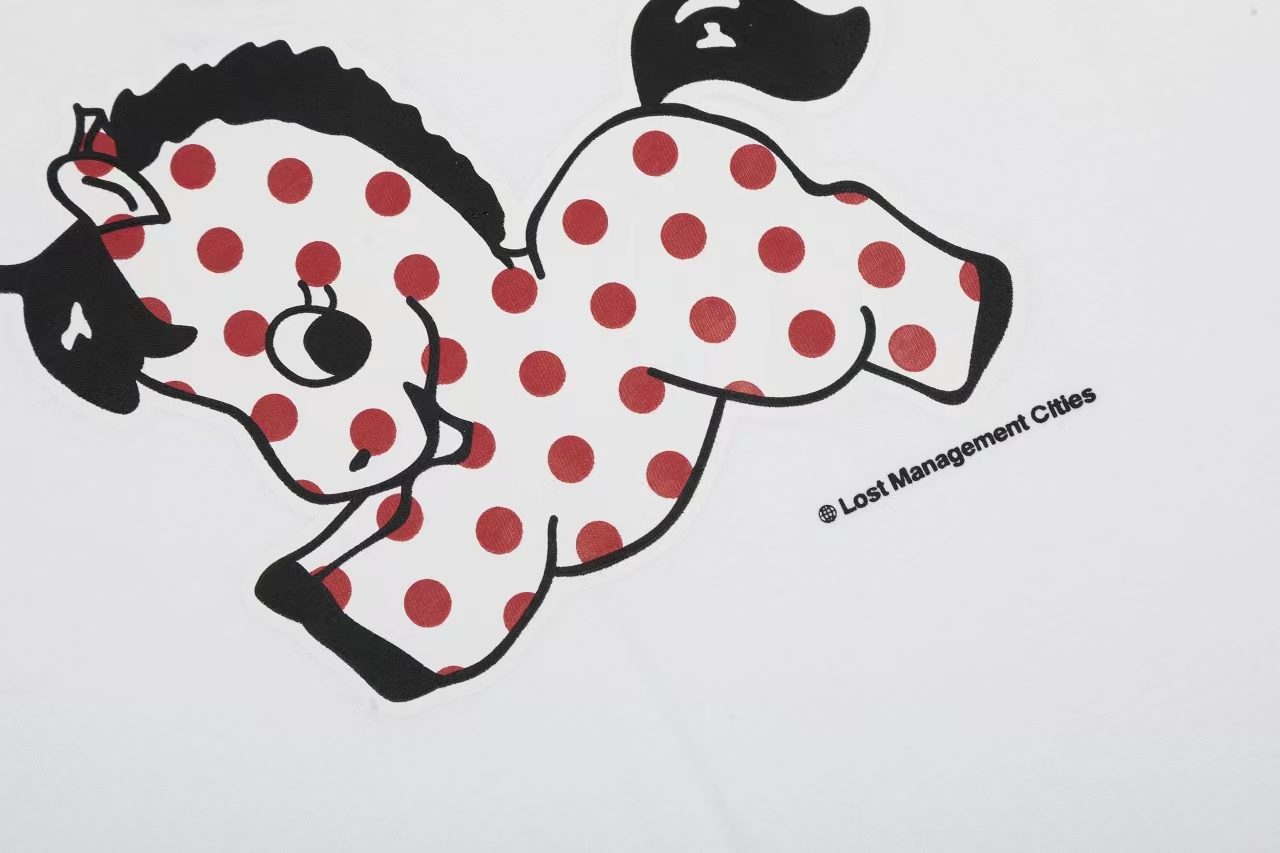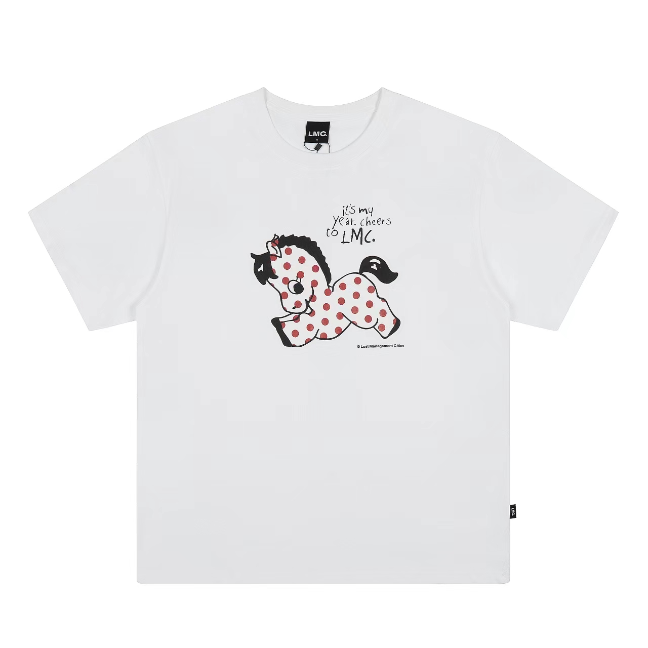 F031404马年新年限定可爱波点小马字母印花圆领短袖T恤