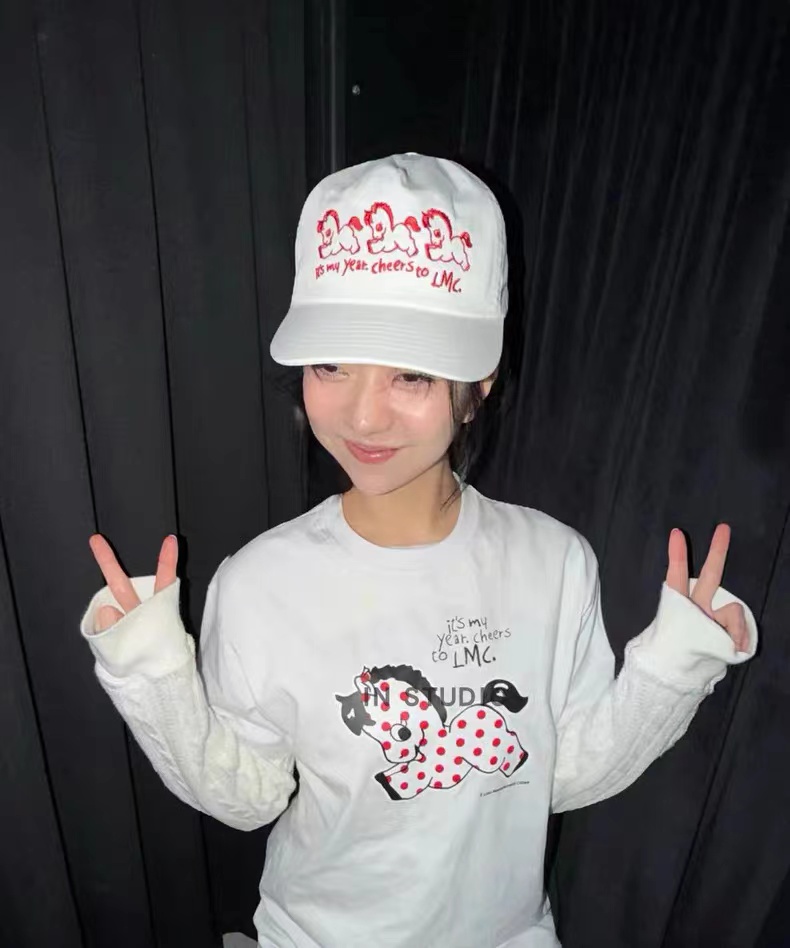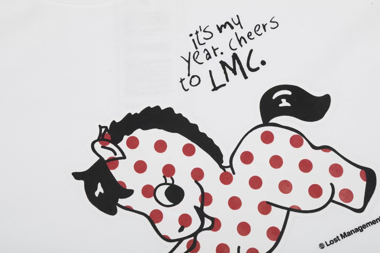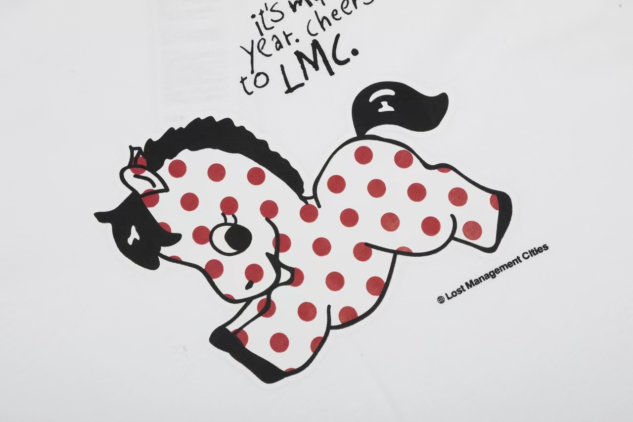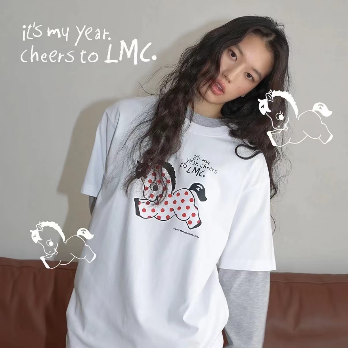 F031404马年新年限定可爱波点小马字母印花圆领短袖T恤