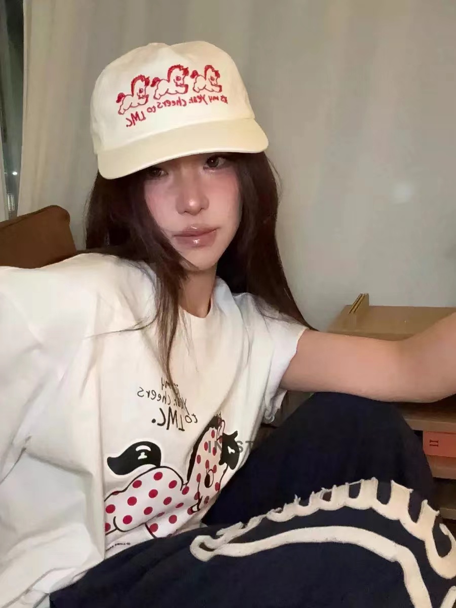 照片印花tee,复古美式半袖。小标刺绣宽松圆领情侣款t恤E040866