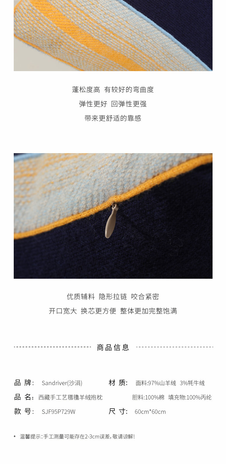 西藏手工艺氆氇羊绒抱枕SJF95P729W