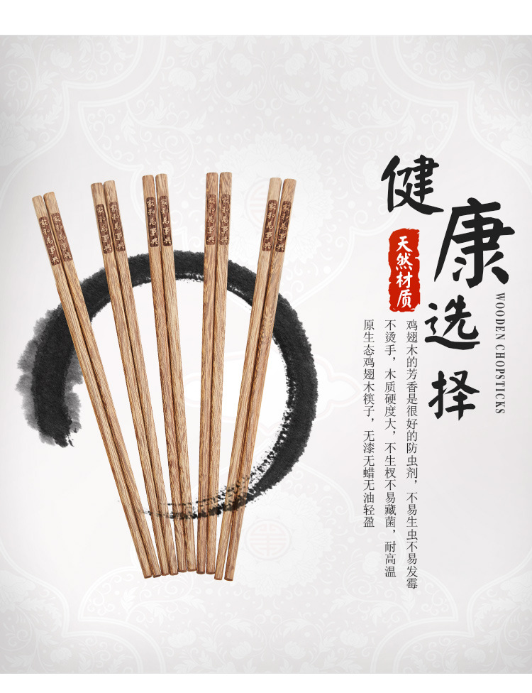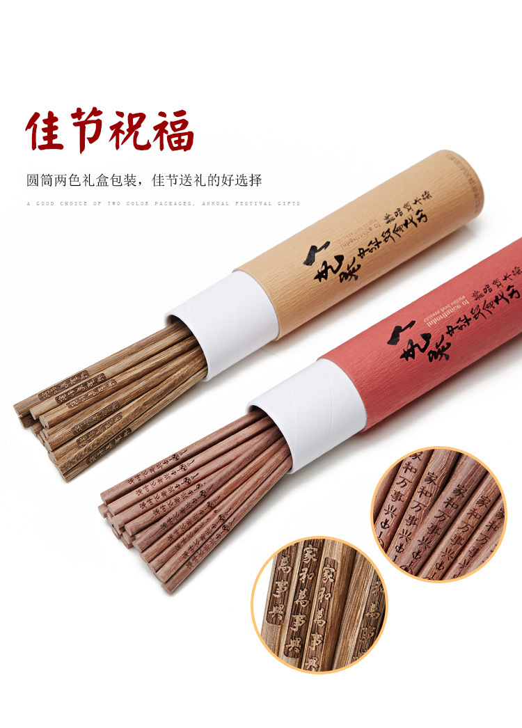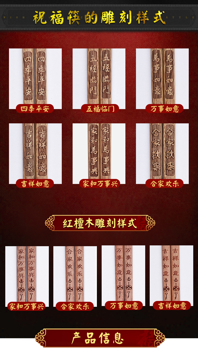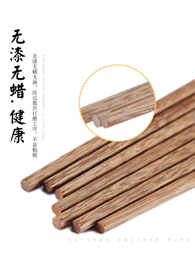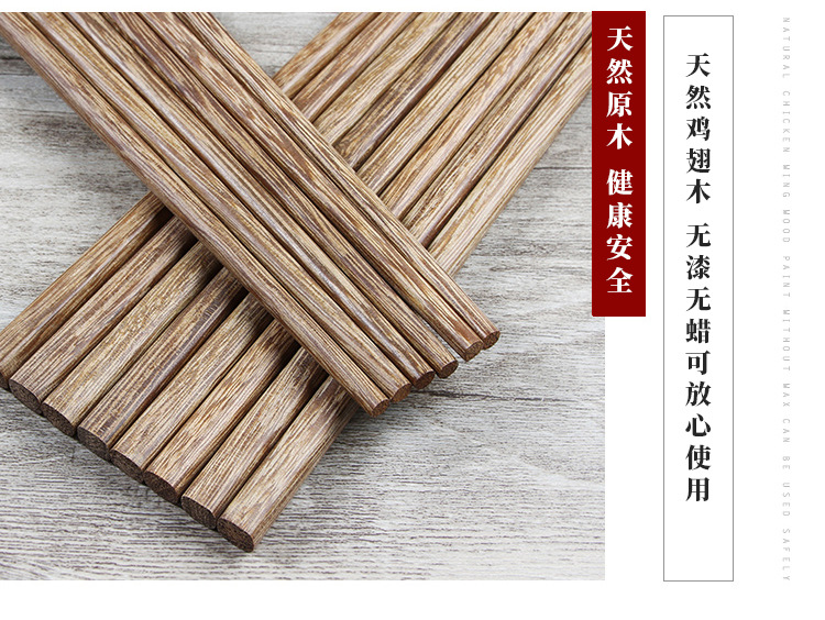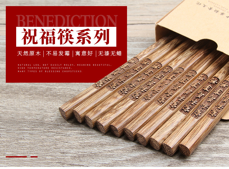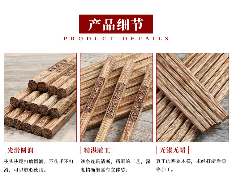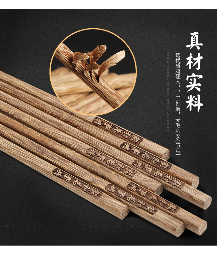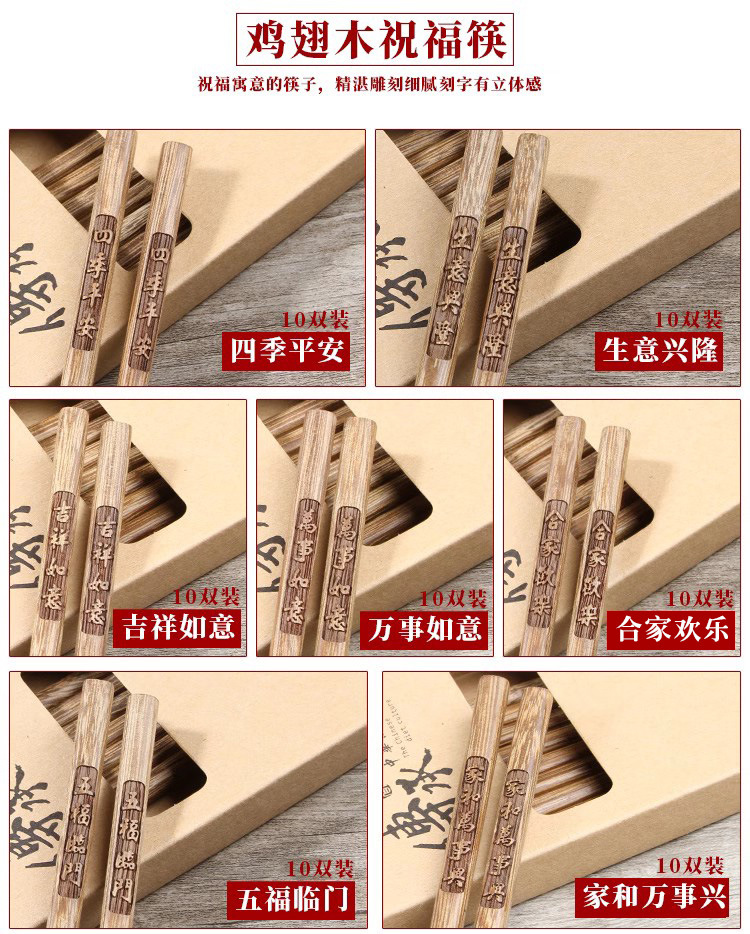【新年!祝福筷系列 0漆0蜡 鸡翅木筷子】家用实木无漆无蜡 10双家庭装防潮防霉红木质快刻字福筷