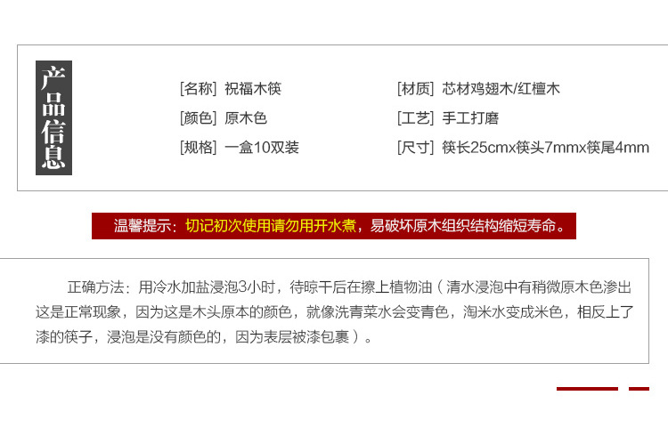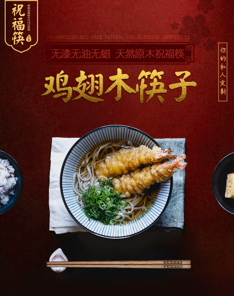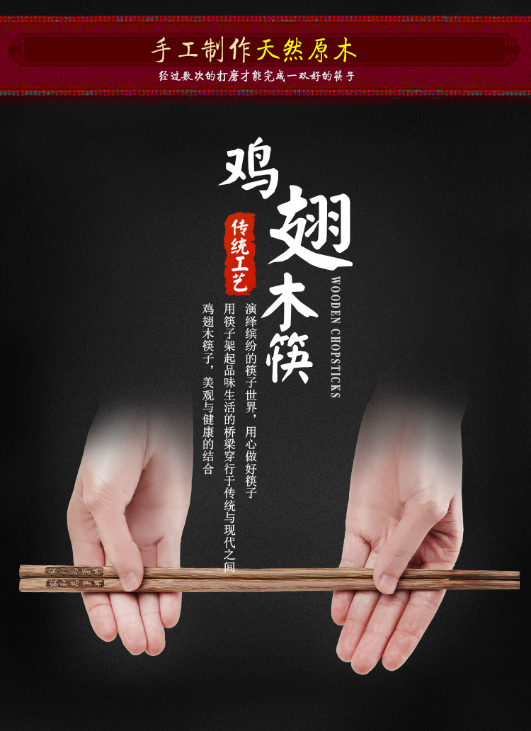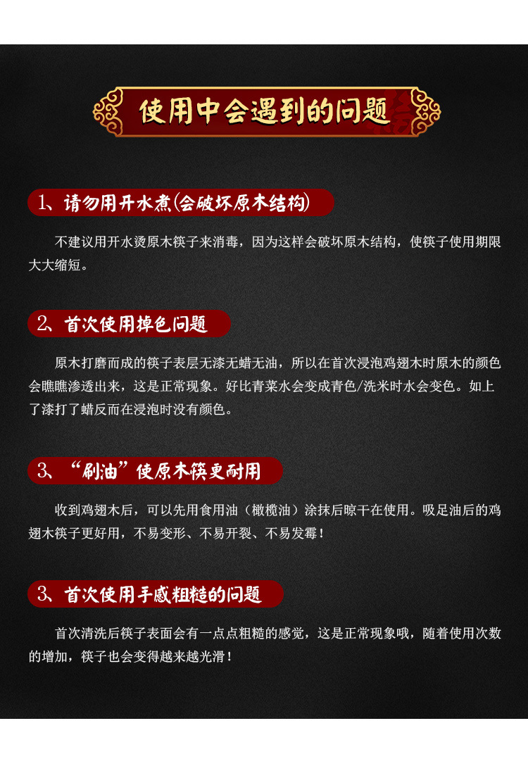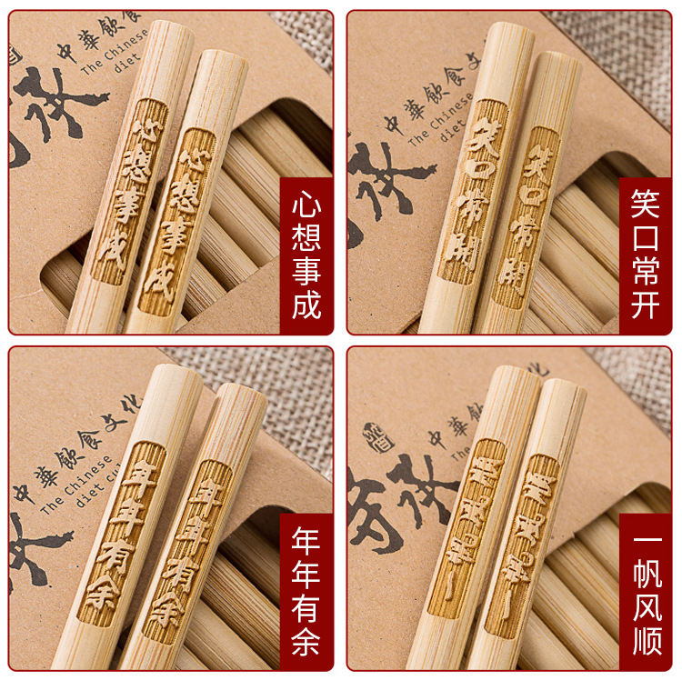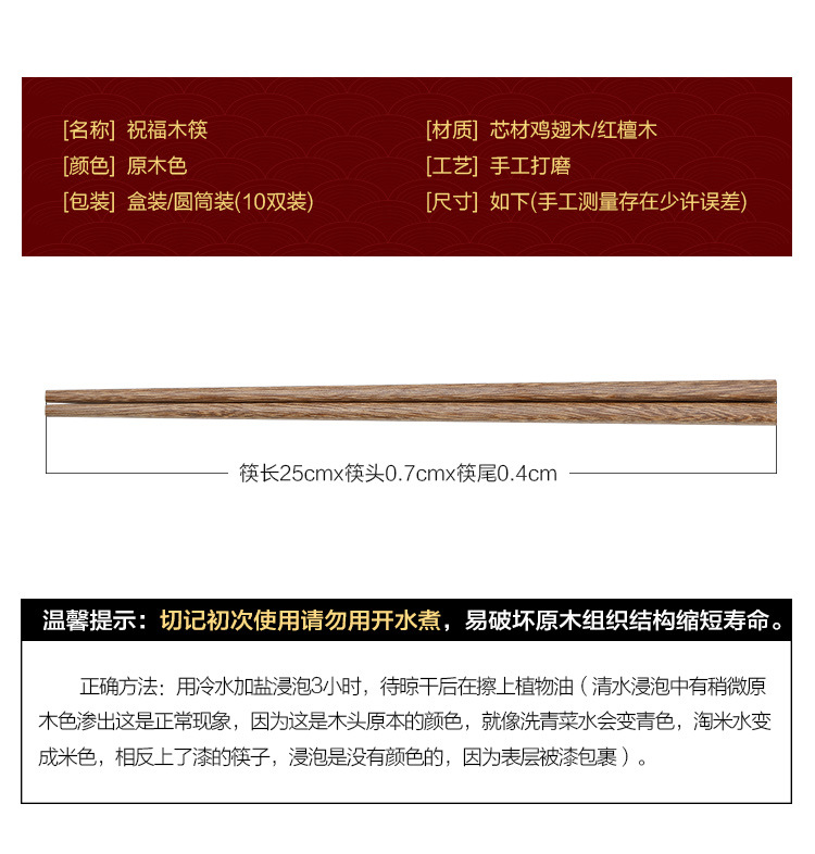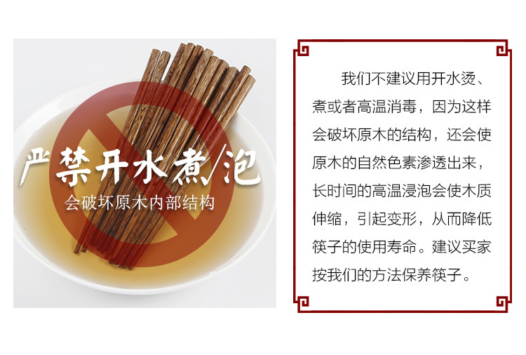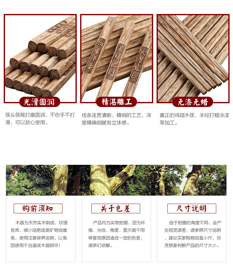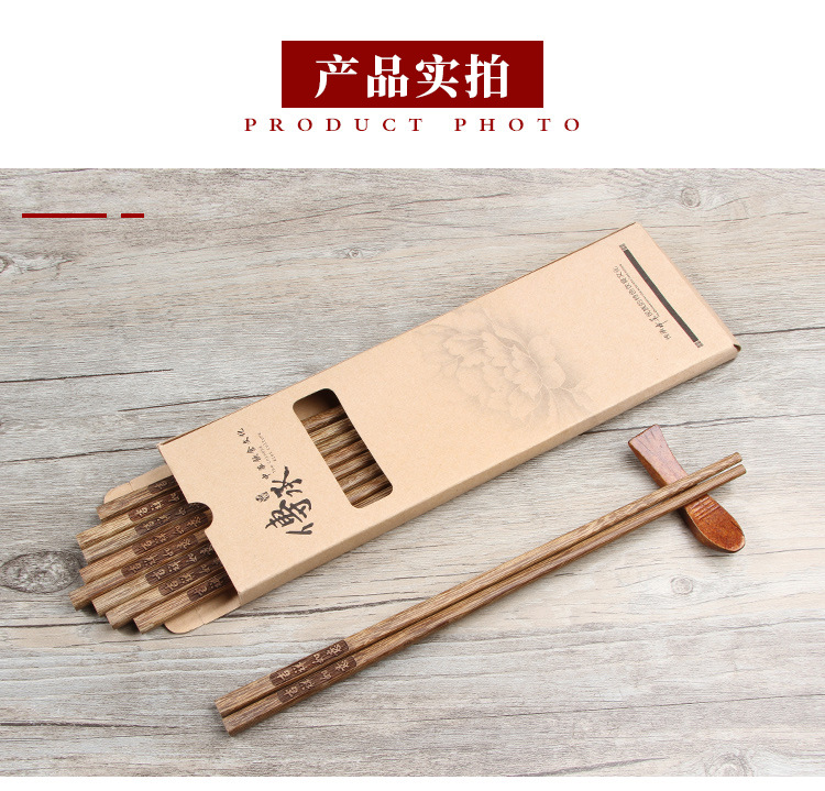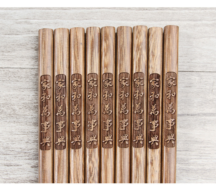 【新年!祝福筷系列 0漆0蜡 鸡翅木筷子】家用实木无漆无蜡 10双家庭装防潮防霉红木质快刻字福筷